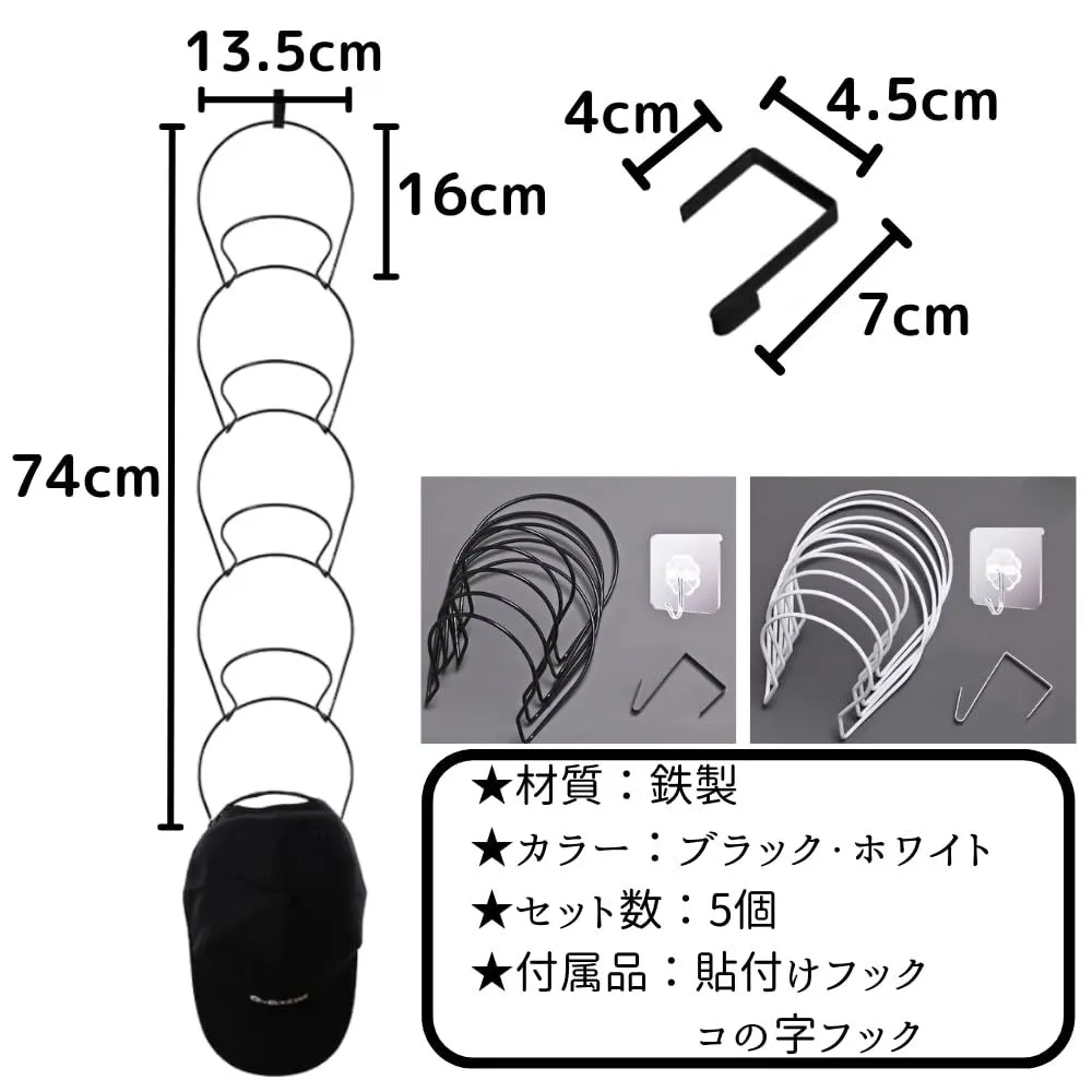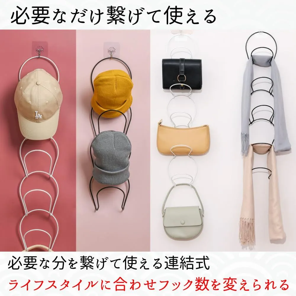 帽子掛け 帽子 キャップ収納 ウォールハンガー スタンド 玄関 壁掛け ドア 取付具付 5個セット (ホワイト)