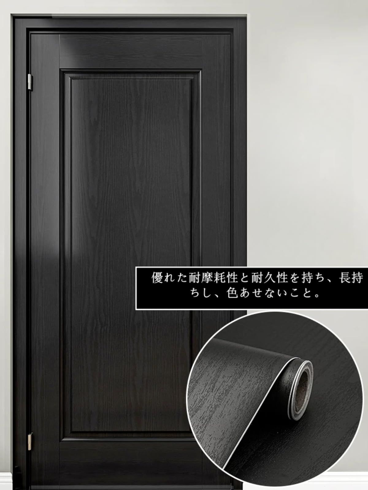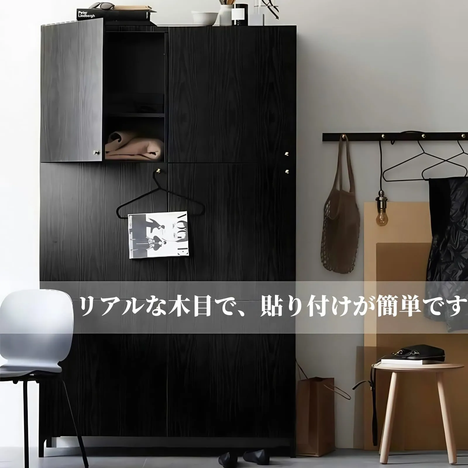 壁紙シール 木目シート リメイクシート 黒木目調シート 30cm×200cm 厚手 ブラック 剥がせる壁紙 はがせる カッティングシート DIY リフォーム 耐熱防水防油 キッチン、バスルーム、リビングルーム、賃貸住宅に適しています
