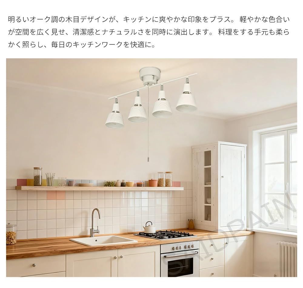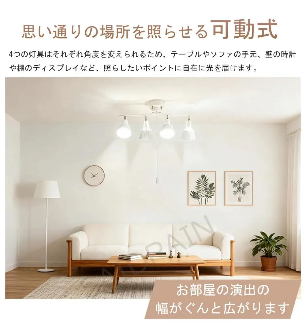 【省エネ設計のLED シーリングスポットライト】全灯・内側2灯・外側2灯・消灯の4通りから、壁スイッチまたは付属の取り外し可能なプルチェーンで簡単切り替え。読書、団らん、リラックスタイムなど、シーンと気分に合わせて最適な明るさを選択できるため、LED の省エネ性能を最大限に活かせます。