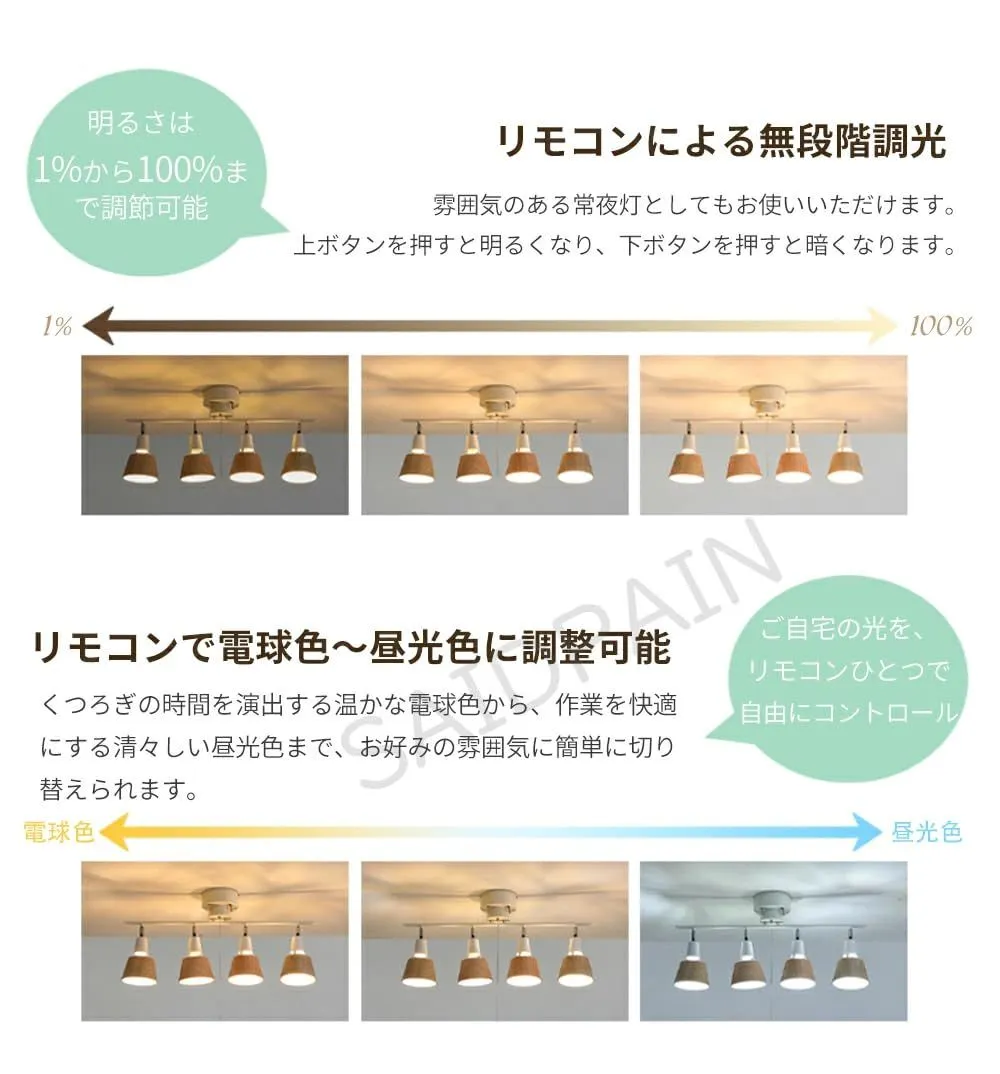 色: アッシュウッド_サイズ: 調色調色電球4個セット+リモコン付き