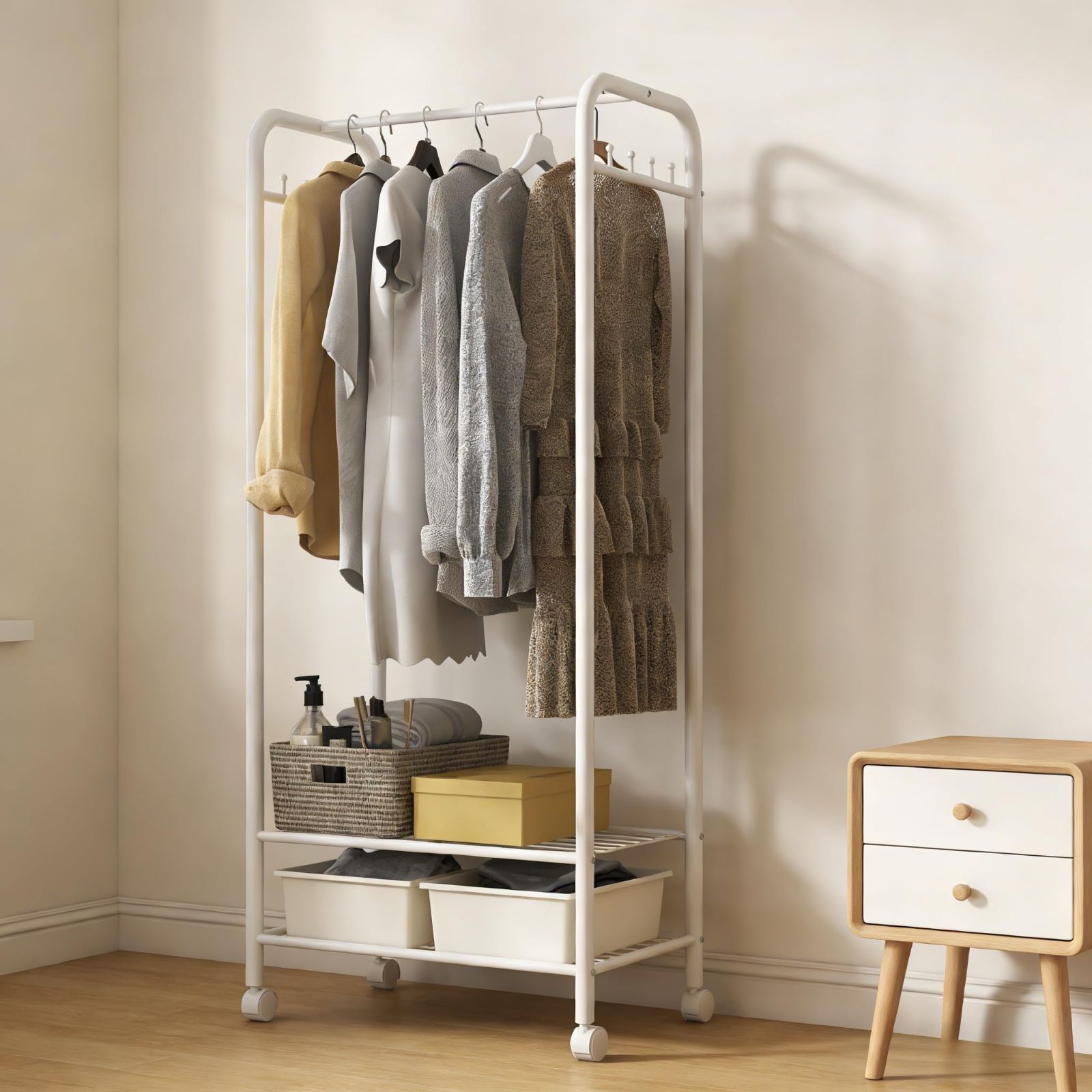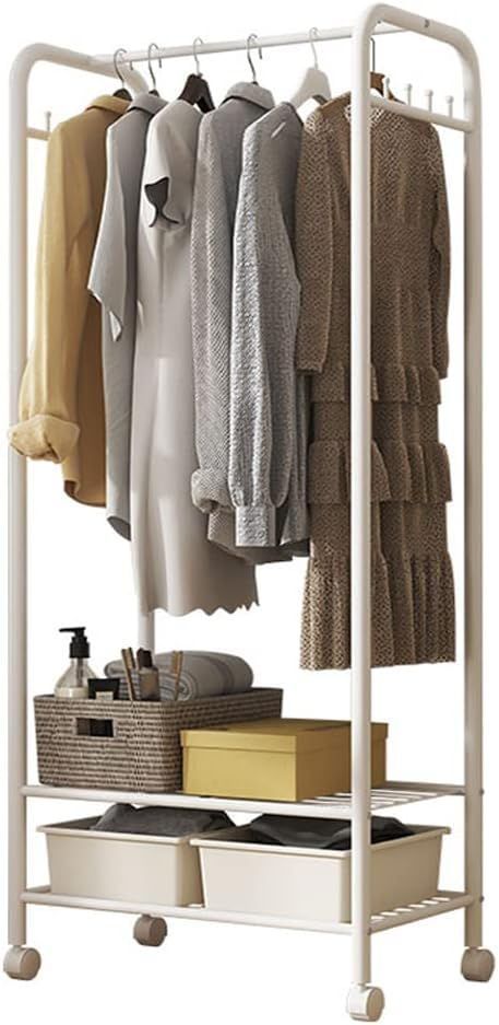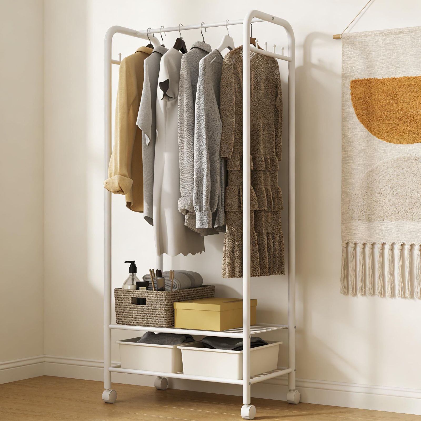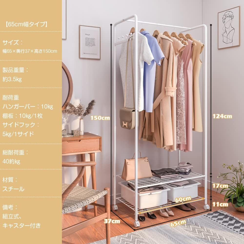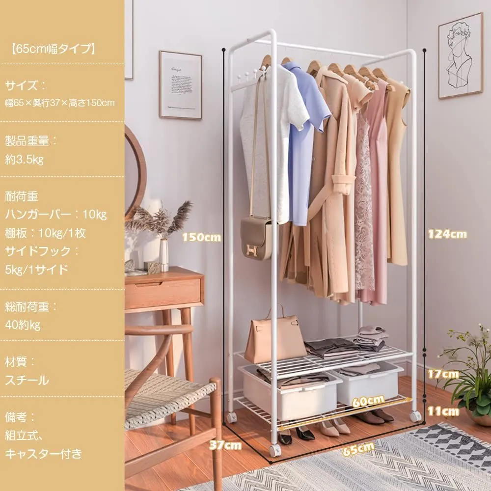 UNHO ハンガーラック 2段 洋服ラック 耐荷重40kg 頑丈 キャスター付き 棚付き 幅60×奥行37×高さ150㎝ 白 洋服ラック 大容量 服 収納 コート掛け 頑丈 洋服収納 スリム