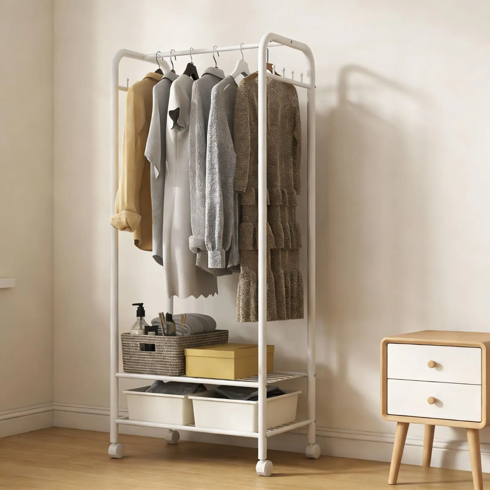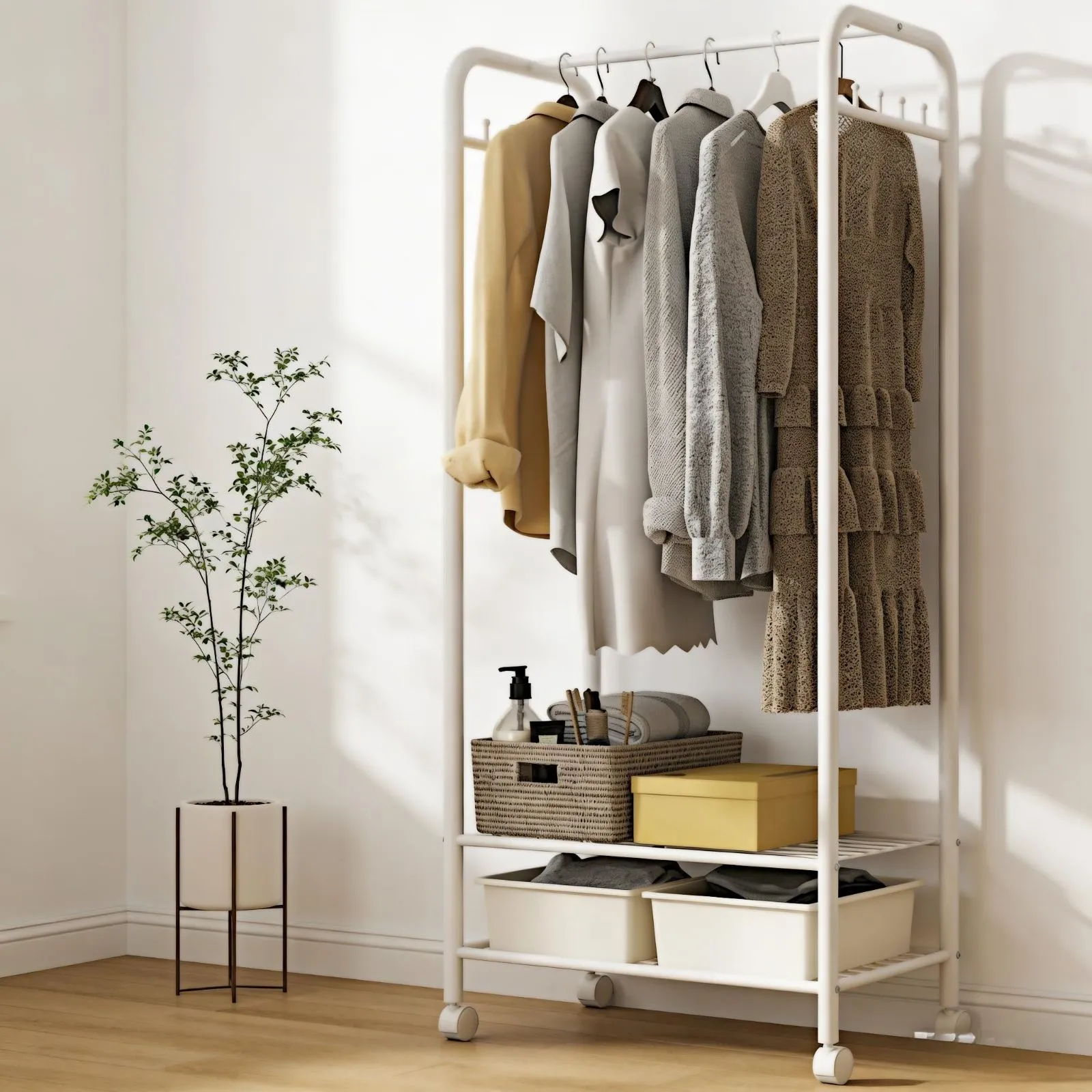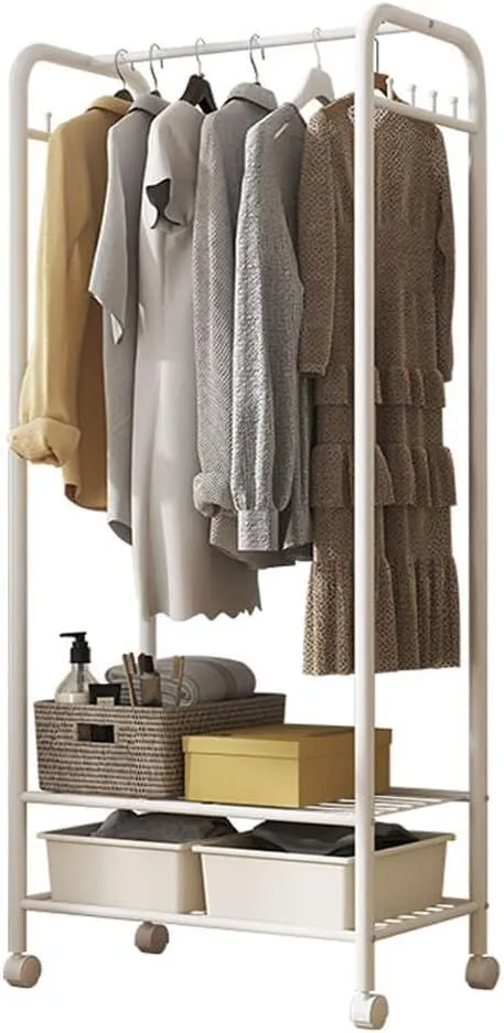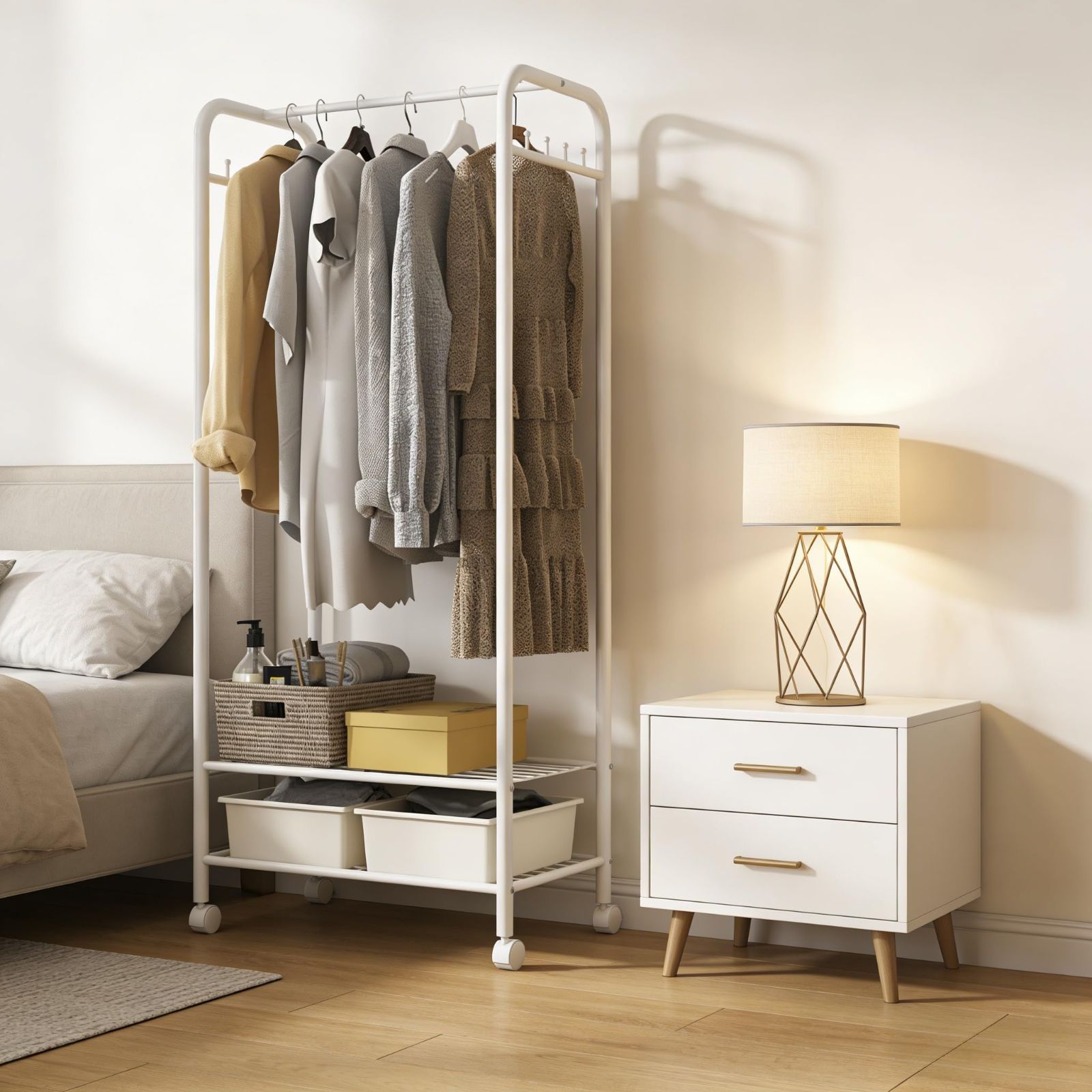 UNHO ハンガーラック 2段 洋服ラック 耐荷重40kg 頑丈 キャスター付き 棚付き 幅60×奥行37×高さ150㎝ 白 洋服ラック 大容量 服 収納 コート掛け 頑丈 洋服収納 スリム