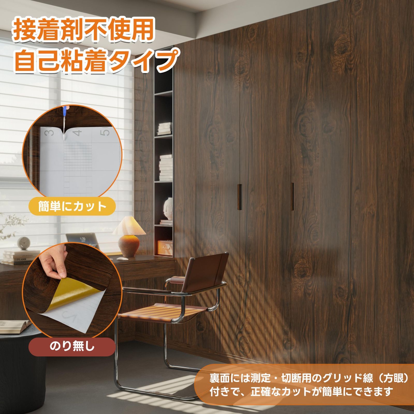 簡単な施工:1.接着剤不要の自己粘着タイプで、すぐに貼り付け可能です。 2.裏面には測定・切断用のグリッド線(方眼)付きで、正確なカットが簡単にできます。ご需要に応じて剥がしてから貼るだけでOK!簡単に模様替えでき、高級感と清潔感を醸し出します。初心者でも簡単に使えます。3.剥がしても跡が残らないので、賃貸住宅でも安心してお使いいただけます