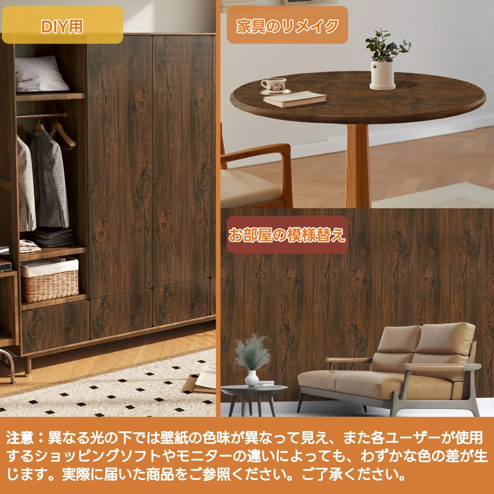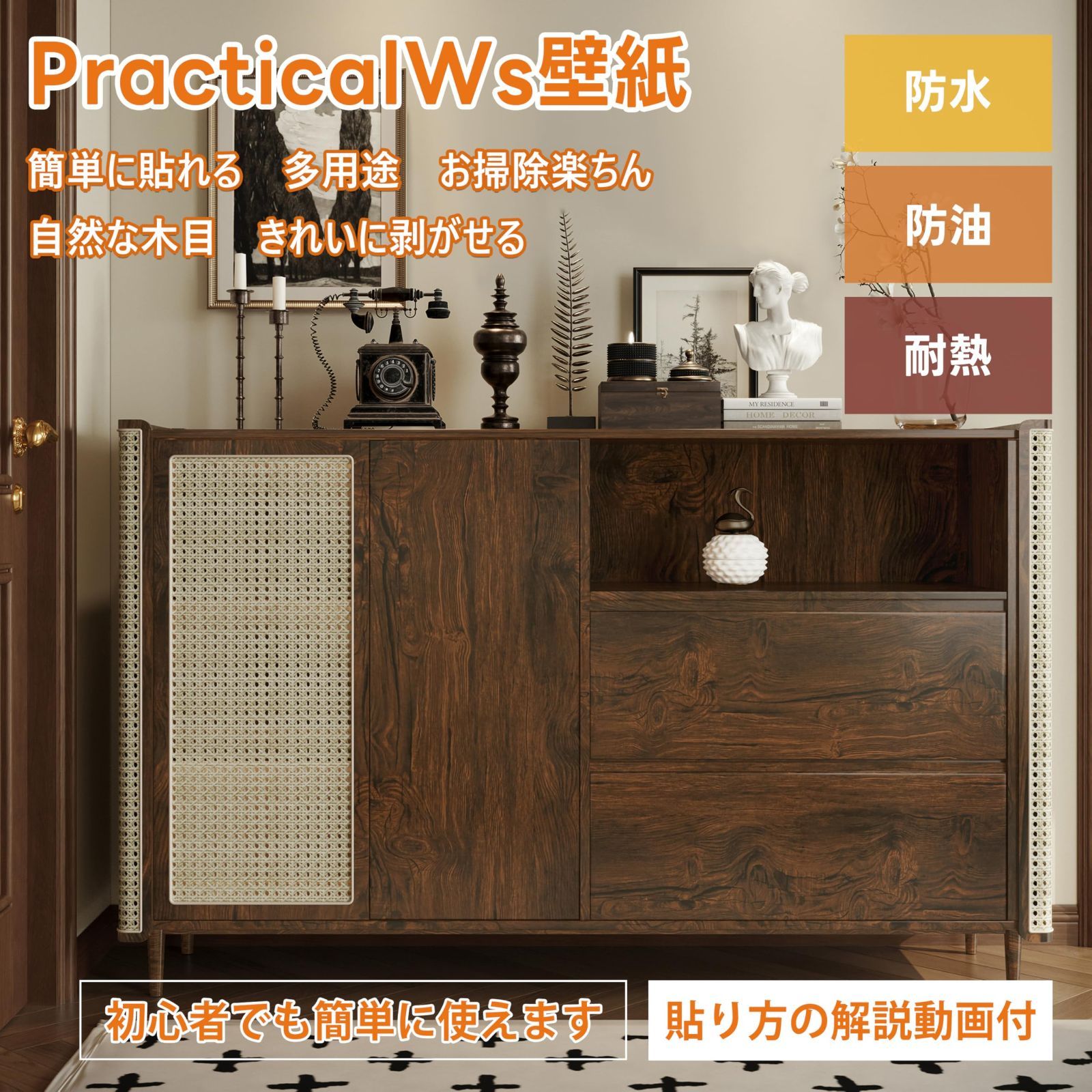 高品質素材:1.耐スクラッチ、耐摩耗性に優れた不浸透性基材を使用します。家具の元の色をしっかりカバーします。汚れが目立ちにくいのが特徴です。 2.水性接着剤採用で、色あせ、臭いなし。貼り付ける時間が長くなるほど接着力が強くなり、剥がれにくい設計です。壁紙を貼る際の注意点:ほこりや水汚れがないように、貼る前に壁をしっかり掃除してください。これにより、壁紙の寿命が延び、接着力も向上します