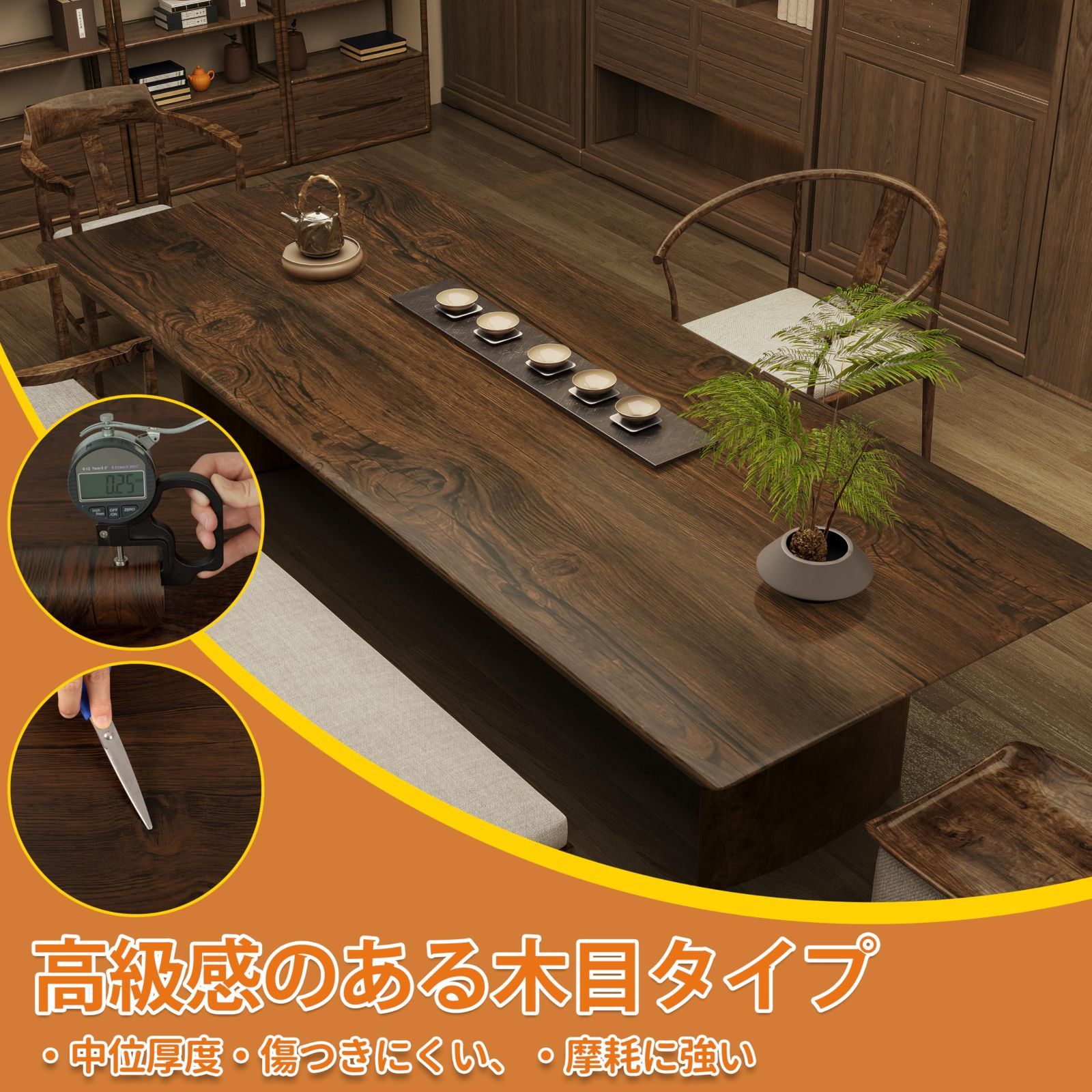 商品の紹介:40cmX300cm、貼り付け可能面積:1.2㎡。色は深みのある加工で、無地で落ち着き感が溢れる仕上がりです。お部屋に温かみと快適な雰囲気を演出します。実用的な耐久性も兼ね備えた、つや消し表面で穏やかでエレガントな仕上がりです。注意:ご覧の環境やモニターの違いにより、色味が実際と異なって見えたり、多少の違いが生じる場合があります。あらかじめご了承くださいませ