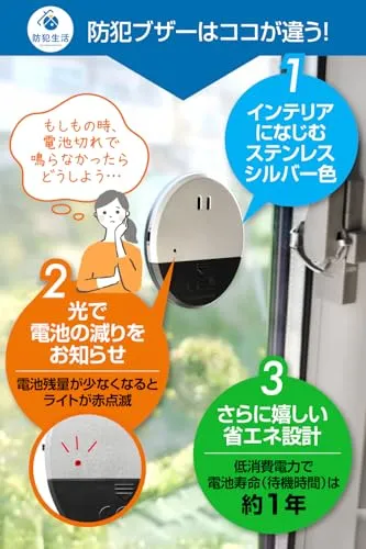 【安心・簡単・防犯】 自宅や事務所、倉庫などの 防犯 にぴったりなドア、窓用の振動検知式 防犯アラーム です。事前の防犯対策をきっちり行うことで 空き巣 や 強盗対策 は可能です。もしものときの不安から解放され、小さなセンサーで大きな安心感が得られます。