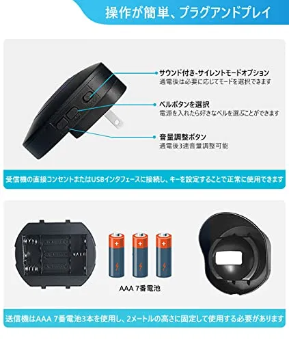 【幅広い適用範囲】受信機と送信機の間200メートルまでの範囲。ワイヤレスチャイムは家、オフィス、ホテル、ショップなどに最適です。ご自宅や店舗、事務所に倉庫などの防犯対策に持って来いのアイテムです。チャイムと赤外線が接続されていない場合は、再マッチングする必要があります。