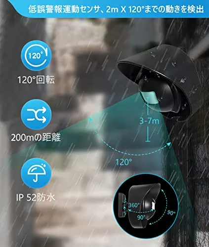 【無線範囲&赤外線センサー】感知距離は37mで、感知角度は120です。受信機電波受信距離は遮蔽物の無い状態で200m。ドア越しにも信号が受信機できます。