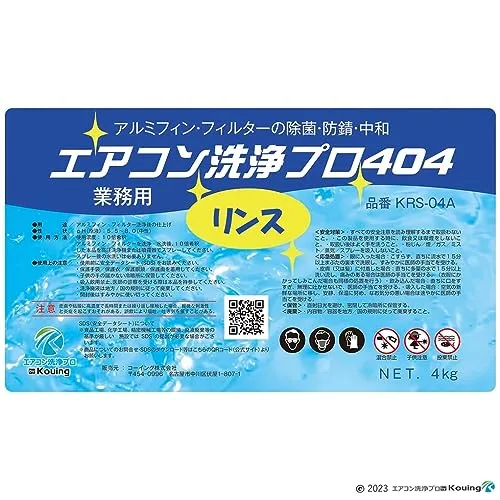 リンス剤 アルミフィン フィルター リンス 処理 4kg エアコン 洗浄 プロ404 業務用 プロ仕様 KRS-04A アルミ フィン 除菌 防錆 腐食防止 中和 カビ バクテリア 抑制 国内発送