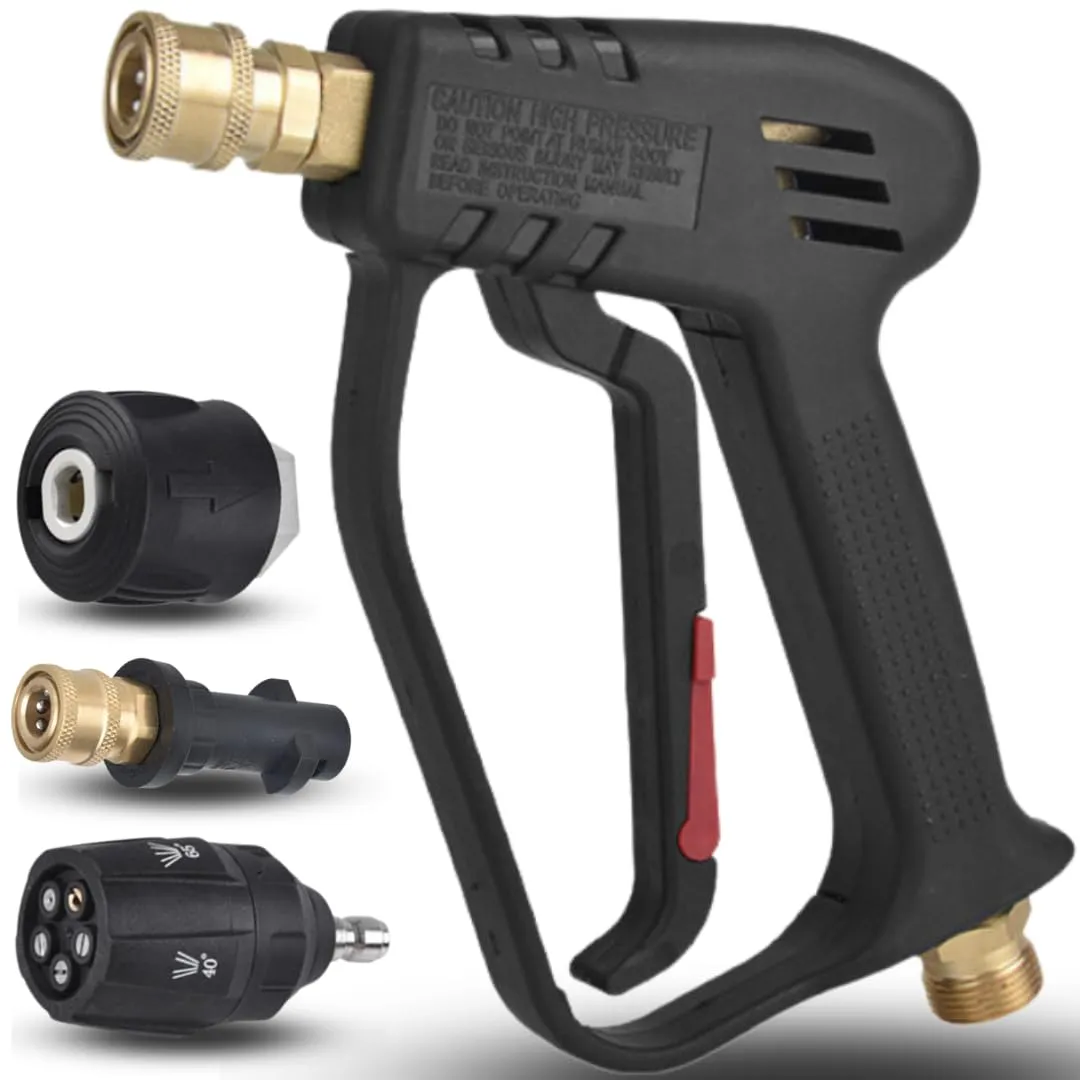 ショートガン PRO【5in1マルチノズル付】 ケルヒャー専用 高圧洗浄機 パーツ Kシリーズ対応 洗車ガン 高圧洗浄ノズル (5段階マルチスプレー & 純正ガン接続 ガンアダプターセット) 国内発送