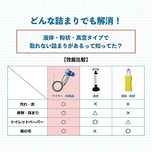【業者要らず】業者に頼らずに水回りのトラブルを解消できるワイヤー式パイプクリーナー。液体タイプやラバーカップで解消できない詰まりや汚れも、ワイヤーで取り除くことが可能です。