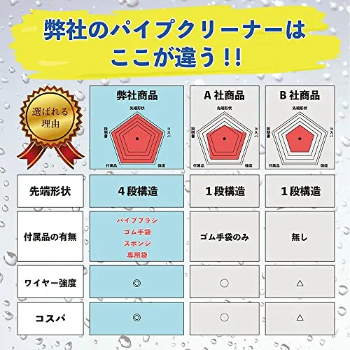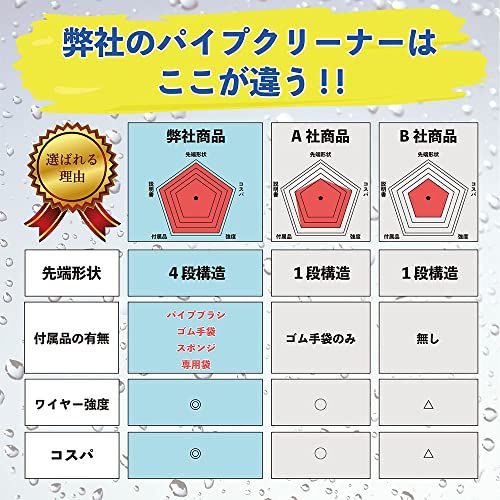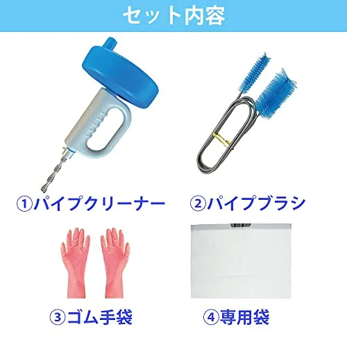 【セット内容】:パイプクリーナー本体(5m/10m)、パイプブラシ、ゴム手袋、専用袋、スポンジ、説明書