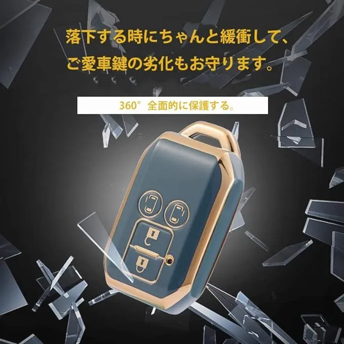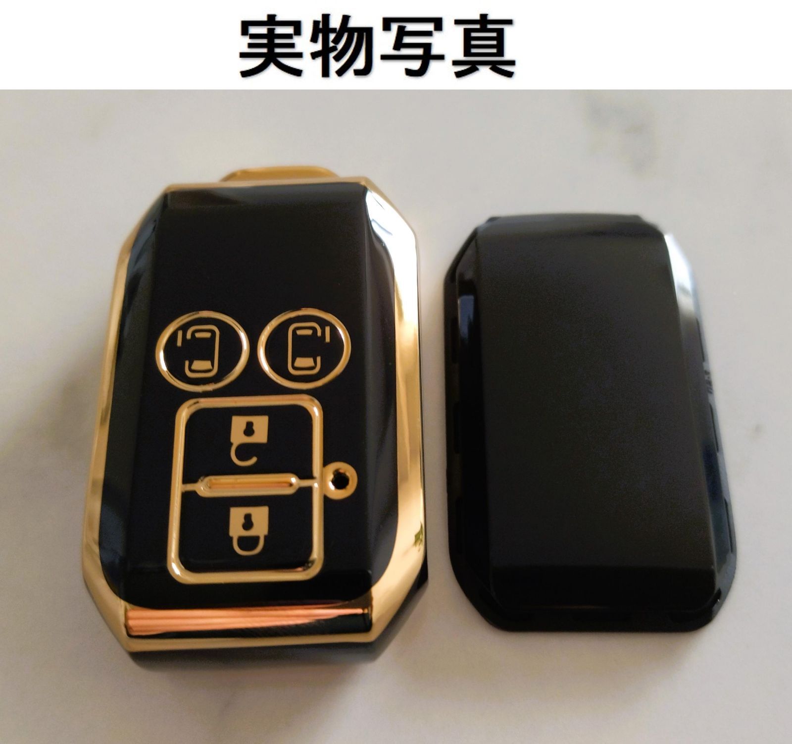 スズキSUZUKI スマートキーケース TPU キーカバー ハスラー スペーシア ワゴン ソリオ ブラック×ゴールド