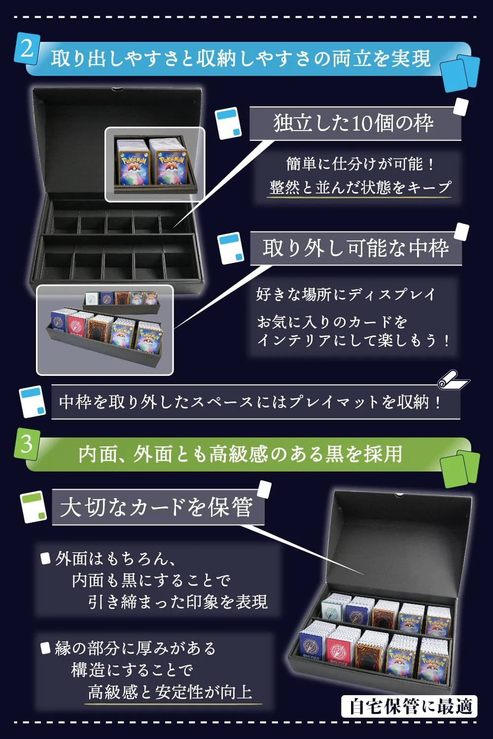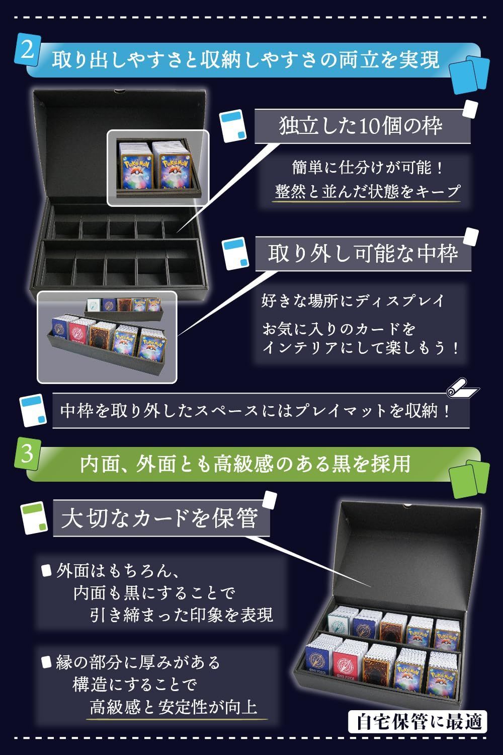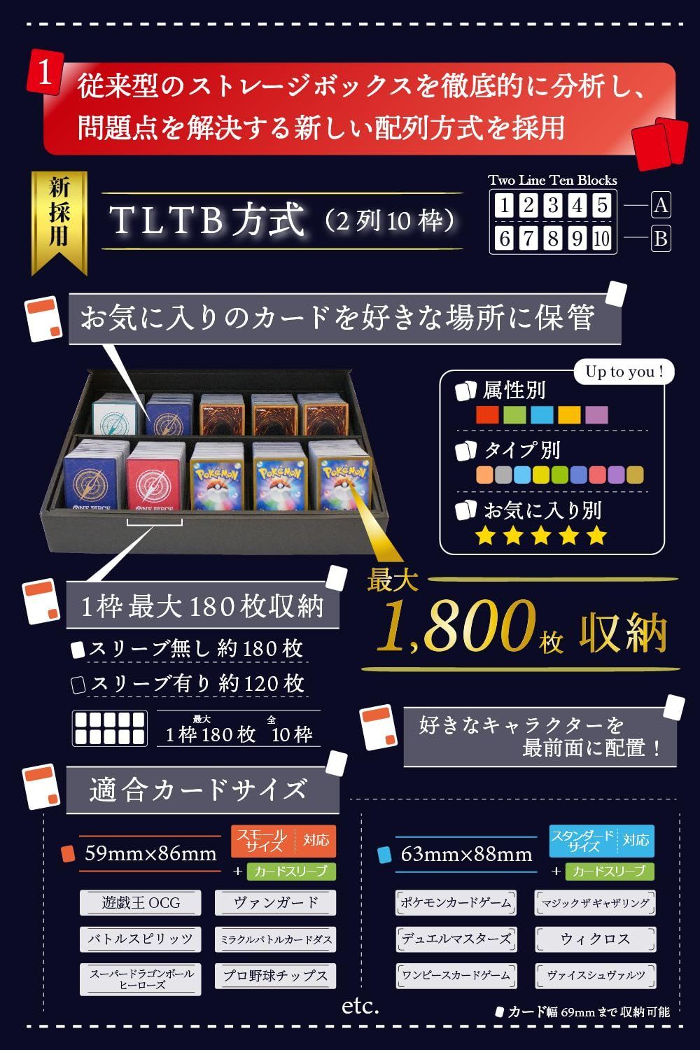 トレーディングカードケース トレカ ケース 約1800枚 収納 ストレージボックス トレカ 大容量 スリーブ対応 組み立て済み 自宅収納用 デッキケース 前面向き 日本製