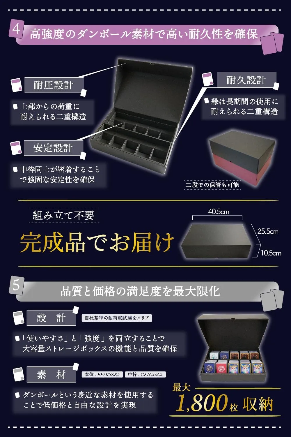 【即日発送】組み立て済み スリーブ対応 大容量 自宅収納用 トレカ トレカ デッキケース ストレージボックス 収納 前面向き 約1800枚 ケース 日本製 トレーディングカードケース