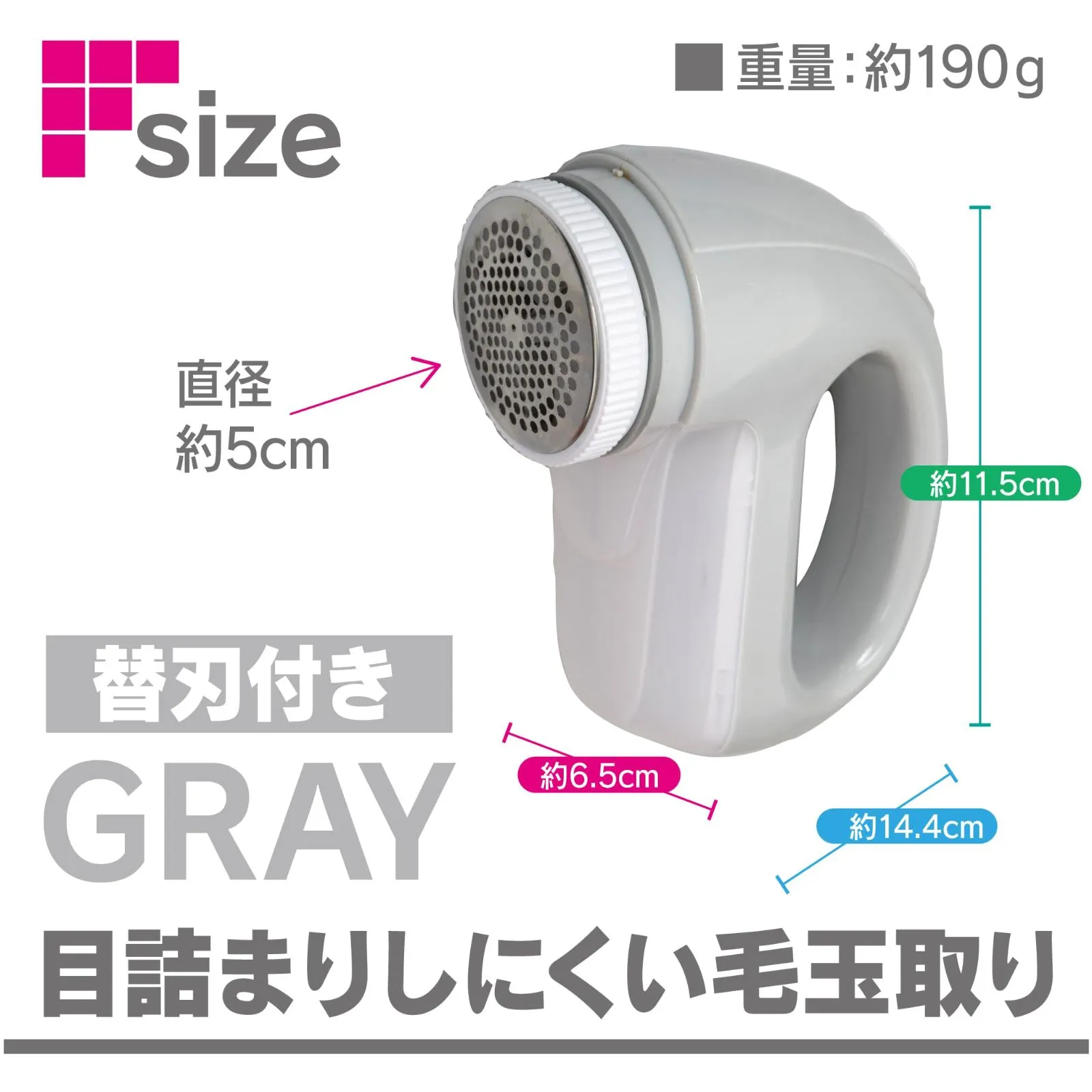 ファイン 目詰まりしにくい毛玉取り 替刃付き よくとれる 電池タイプ 毛玉クリーナー ワイドヘッド (グレー) FIN-1000GL