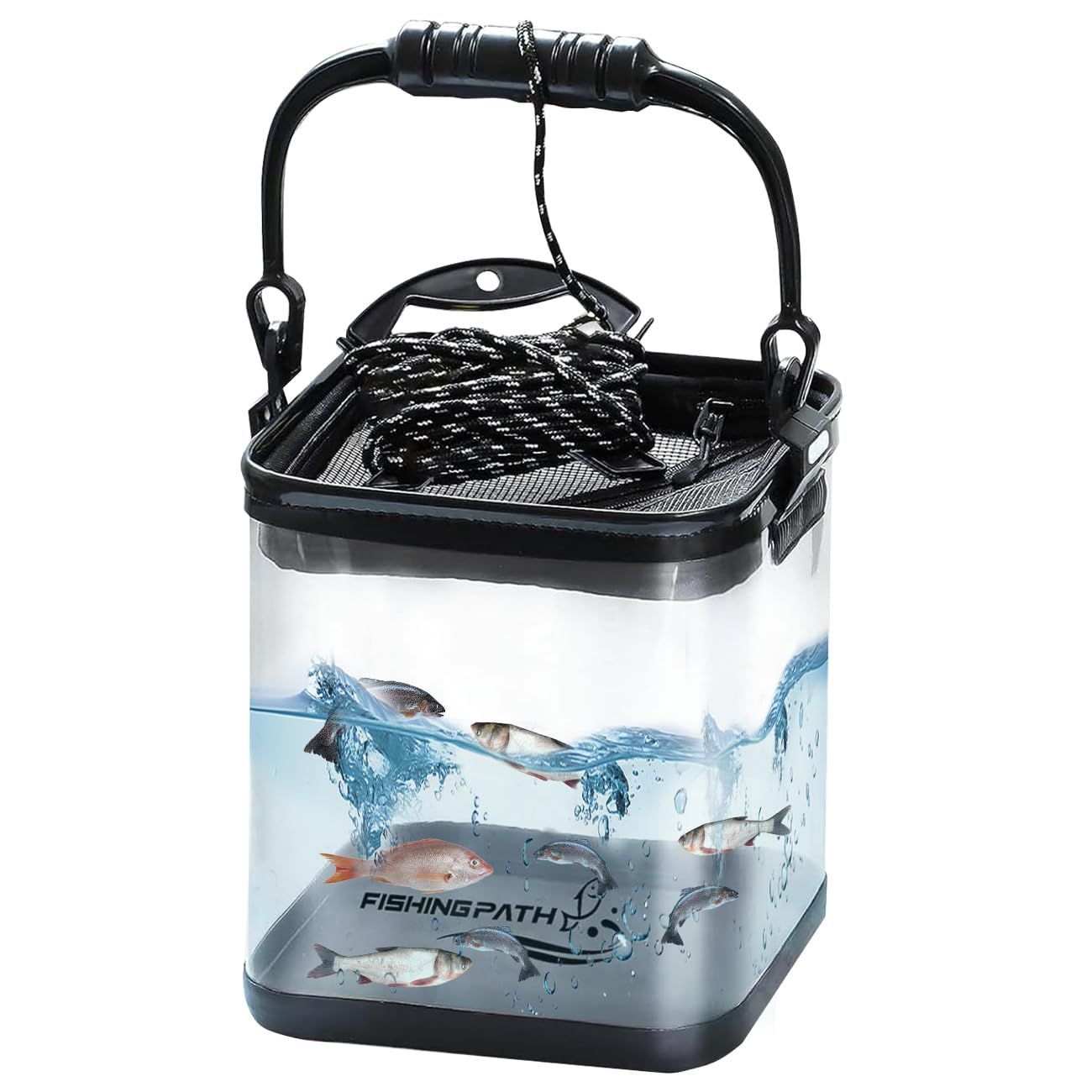 釣り バケツ 透明 改良型 滑り止めロープ付き 釣り バッカン 釣り道具 水汲み 折りたたみ バケツ