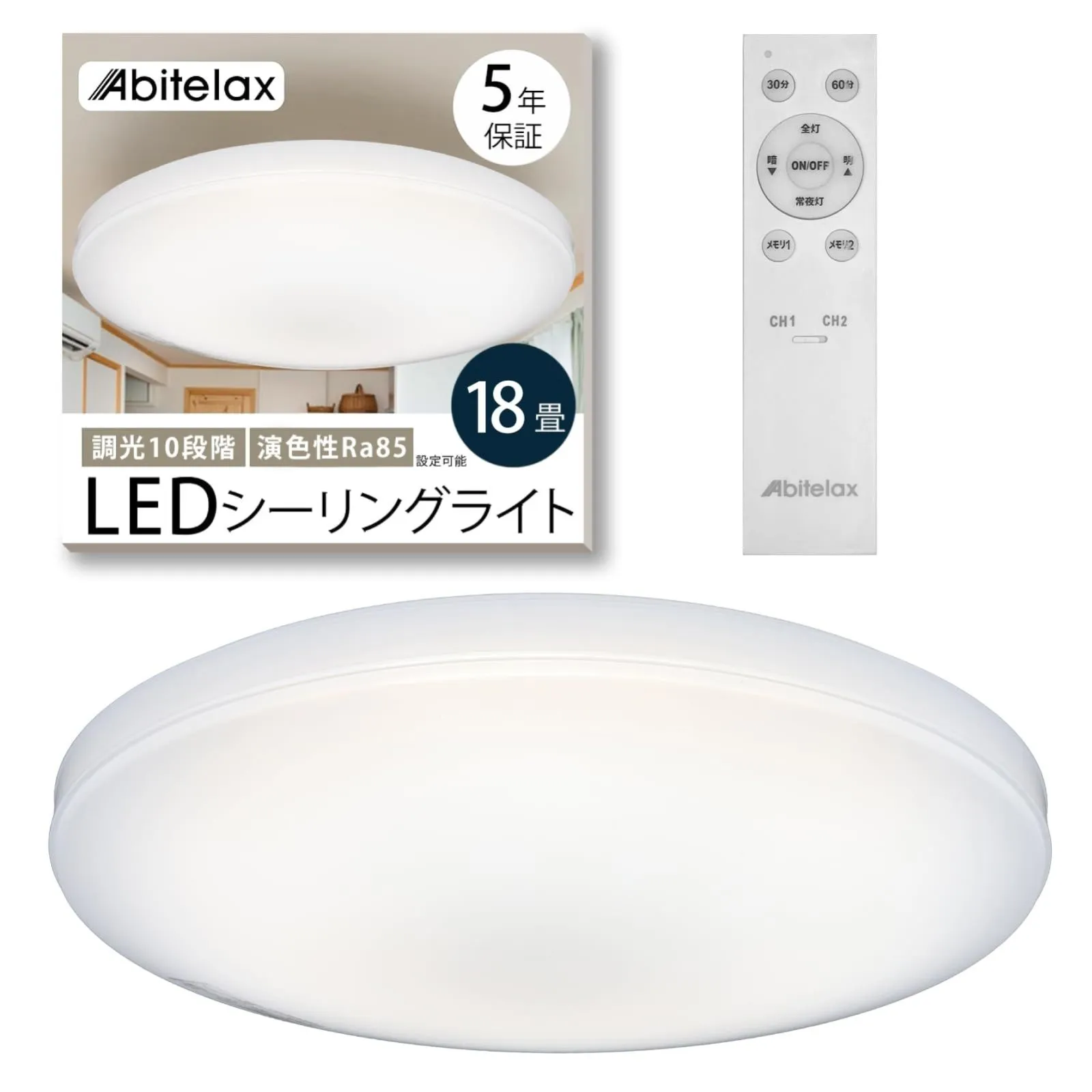 アビテラックス シーリングライト 18畳 LEDシーリングライト ALC-S18 照明器具 省エネ 30分/60分 切タイマー メモリー機能 天井 ledライト リモコン付 調光10段階 部屋 寝室 和室 台所 洗面所 天井照明 PSE認証獲得 Abitelax (18畳)