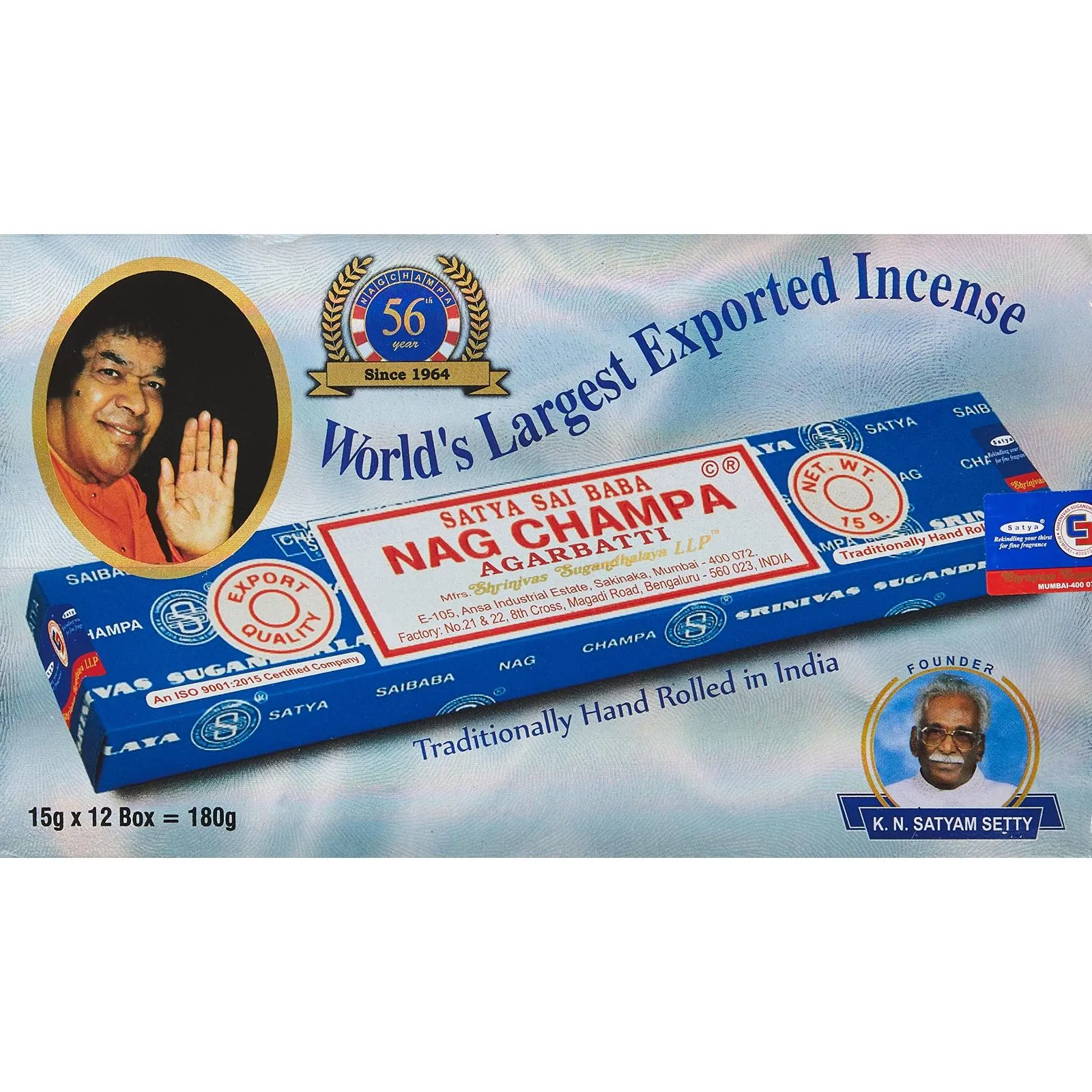 Satya サイババ・ナグチャンパ 15g×12箱入り=180g