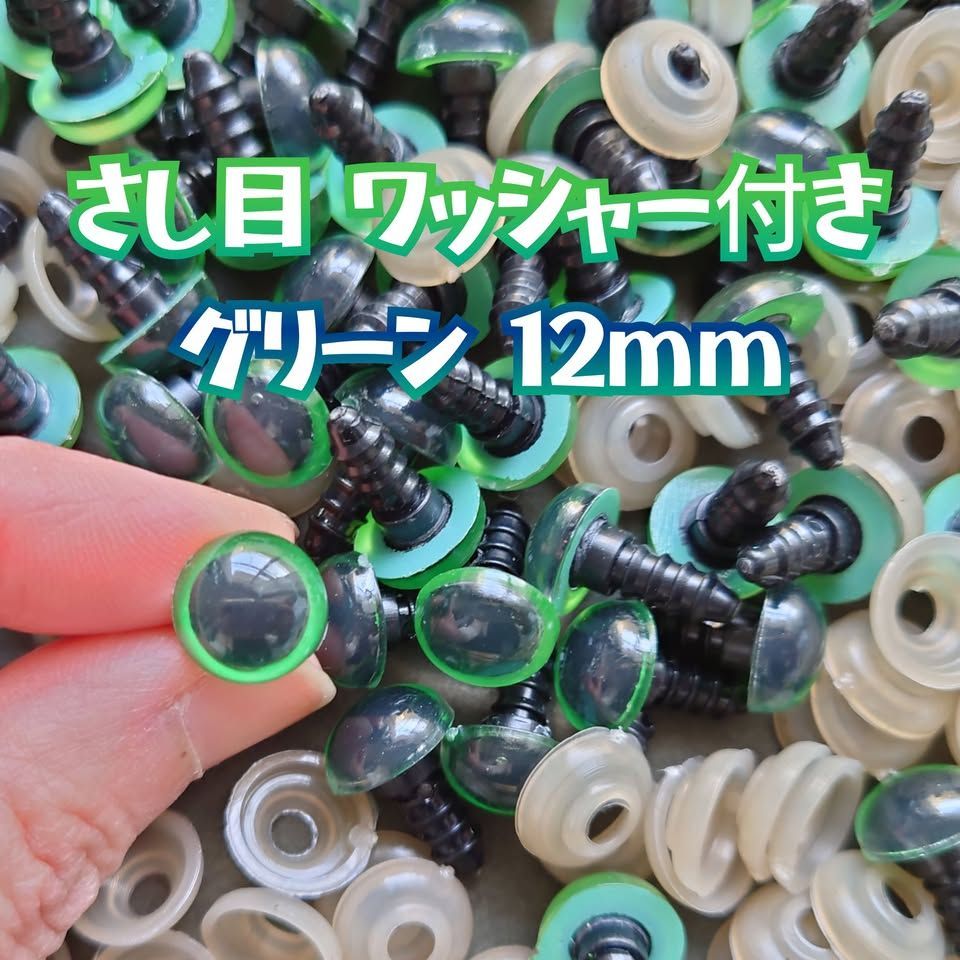 12mm グリーン 人形 ぬいぐるみ 目 さし目 差し込みタイプ 10個