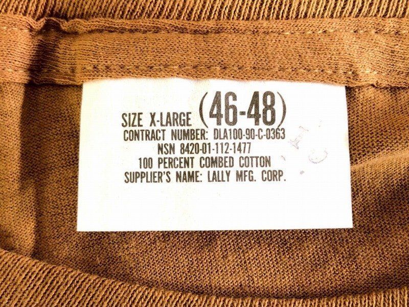 【米軍放出品】未使用品 Tシャツ XLサイズ クルーネック 半袖 アンダーシャツ ブラウン コットン ミリタリー (コンパクト) ☆bc24dk