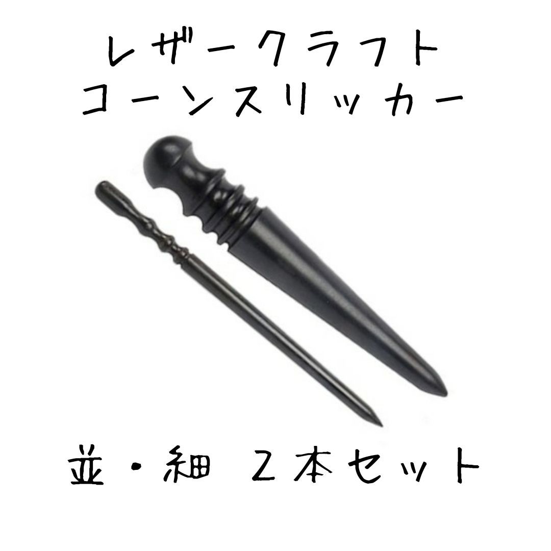 通常のコーンスリッカーでは磨きにくい細かい部分や、ファスナー用の切り込み部分を磨きあげるのに使用します。特にファスナー周りの仕上げは通常太さではやりづらく、目につく部分でもあるため一本持っておくと非常に重宝します。
