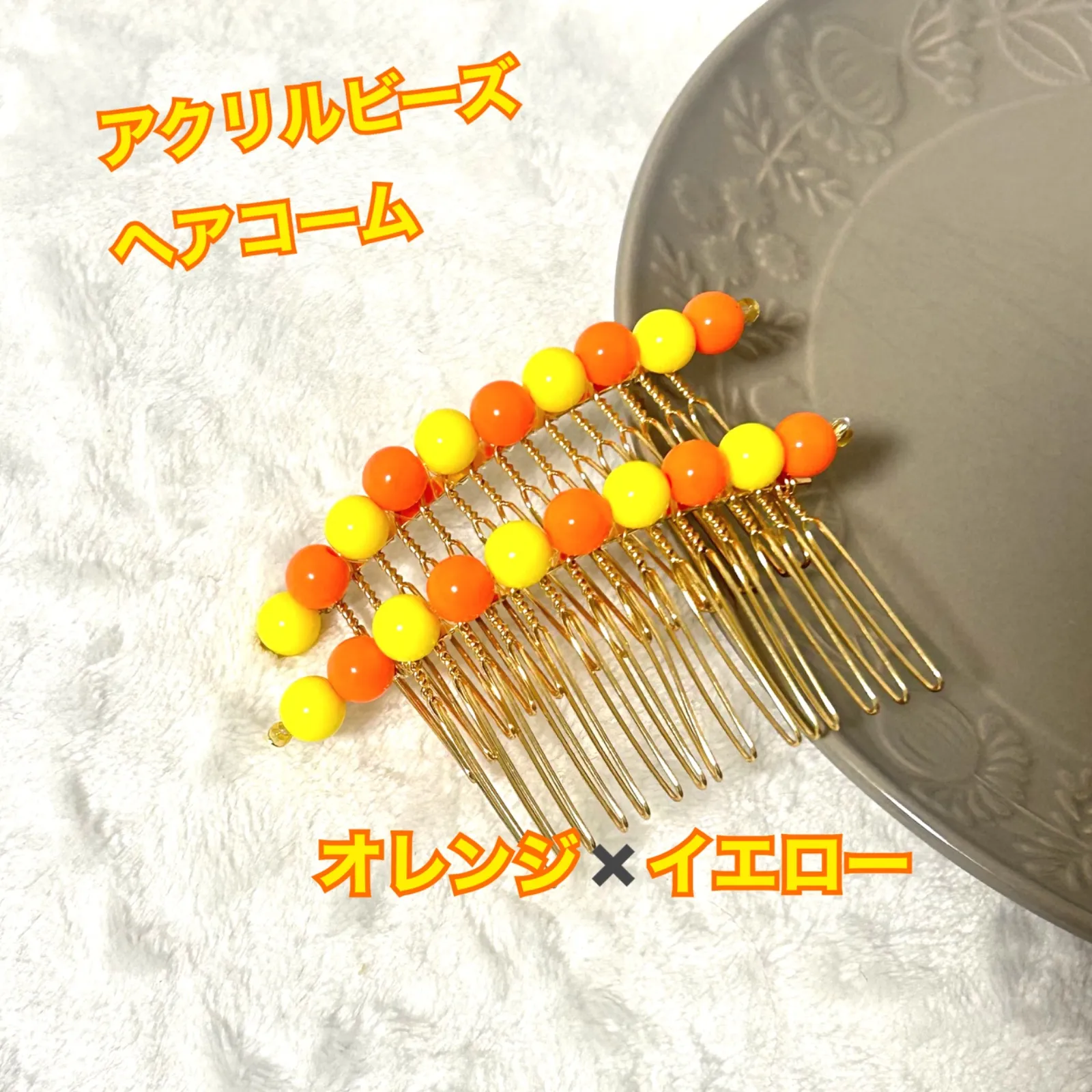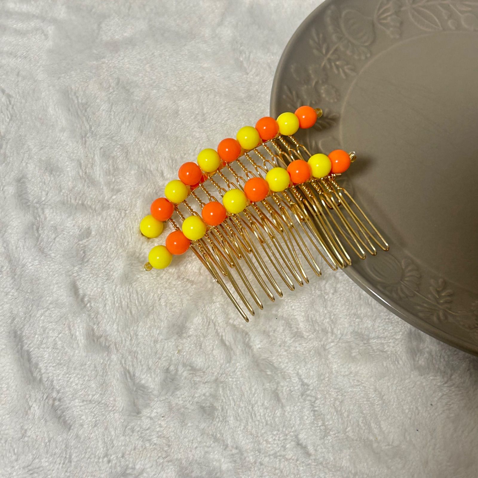 ◆ハンドメイド◆ ヘアコーム オレンジ✖️イエロー 2個セット フラメンコ 社交ダンス ダンス 和装