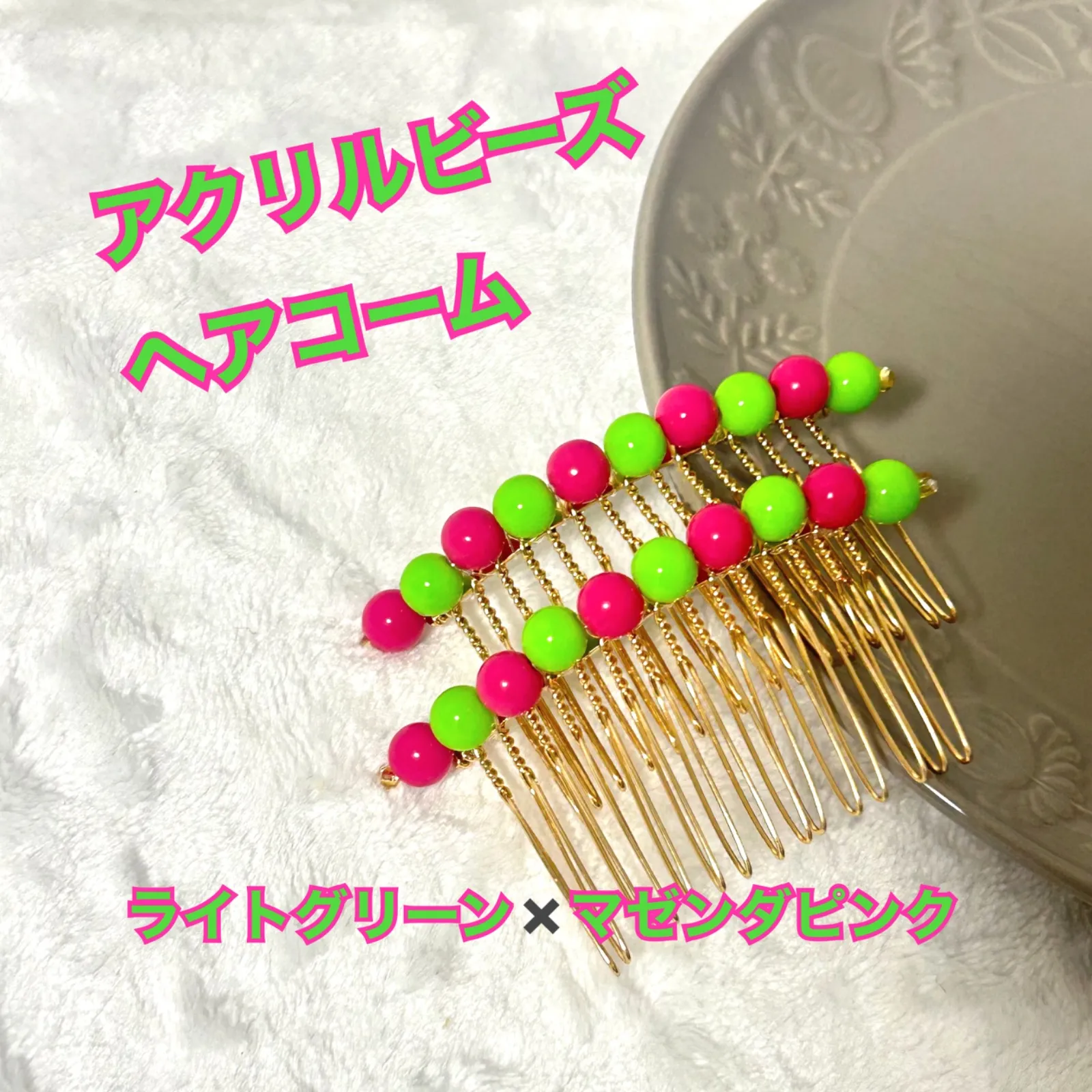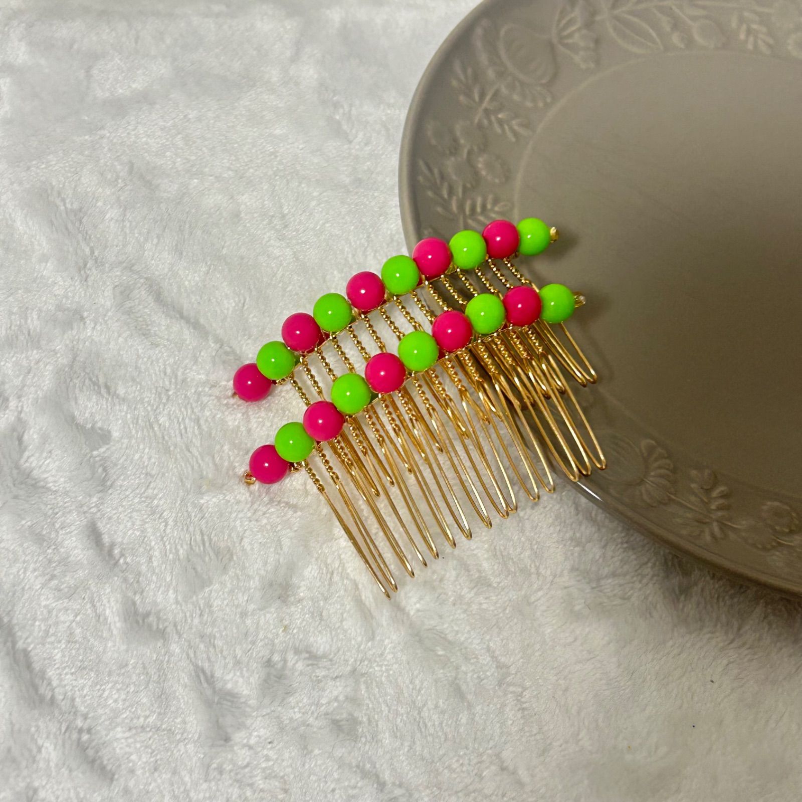 ◆ハンドメイド◆ ヘアコーム ライトグリーン✖️マゼンダピンク 2個セット フラメンコ 社交ダンス ダンス 和装