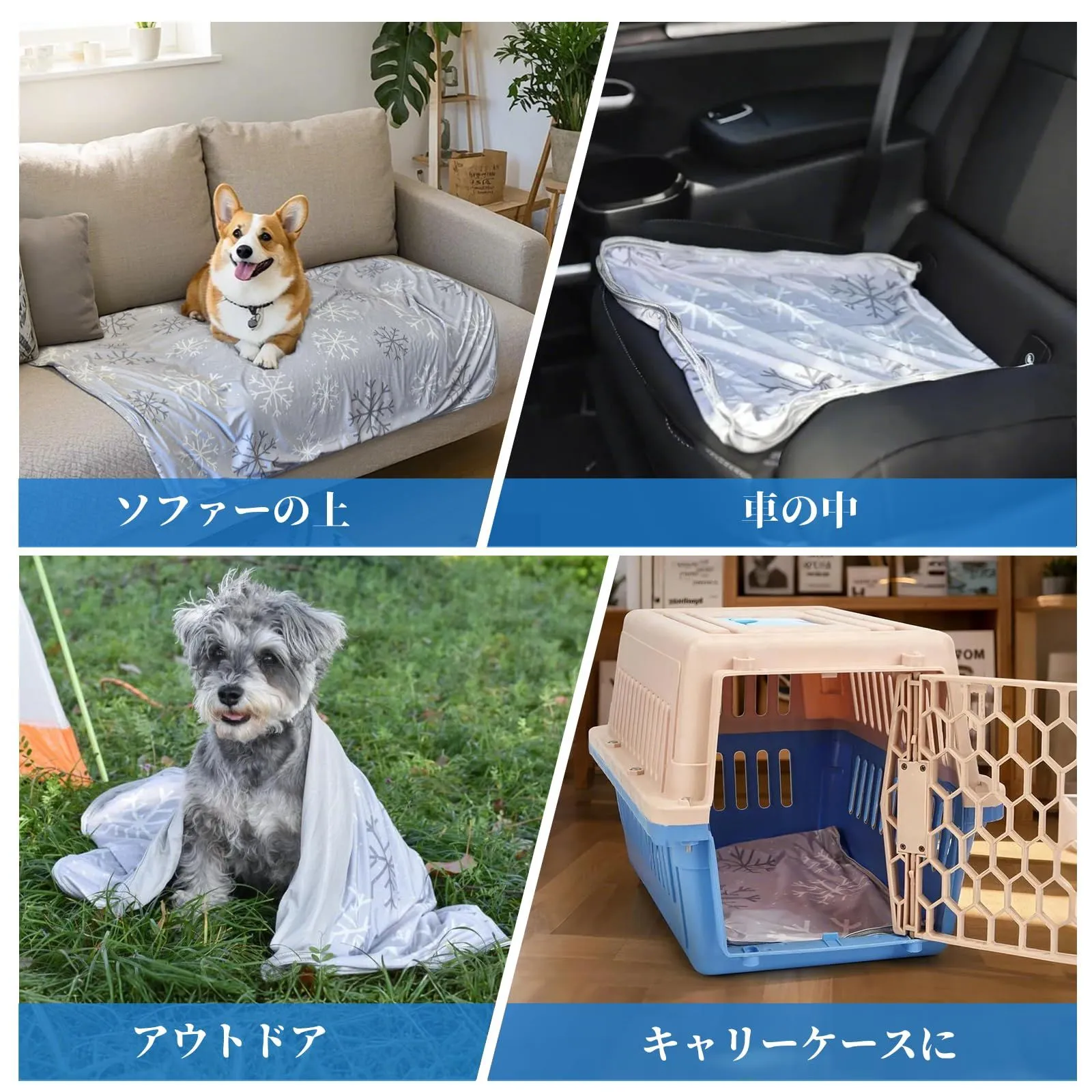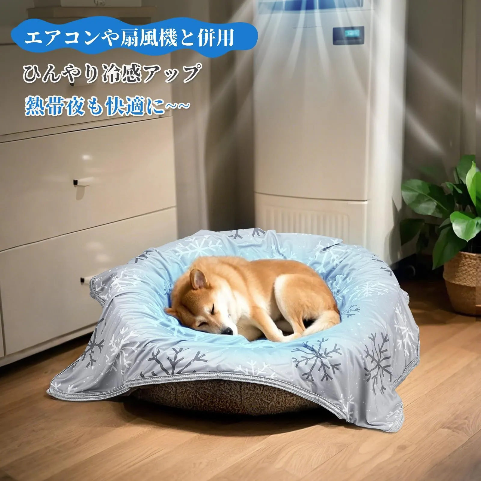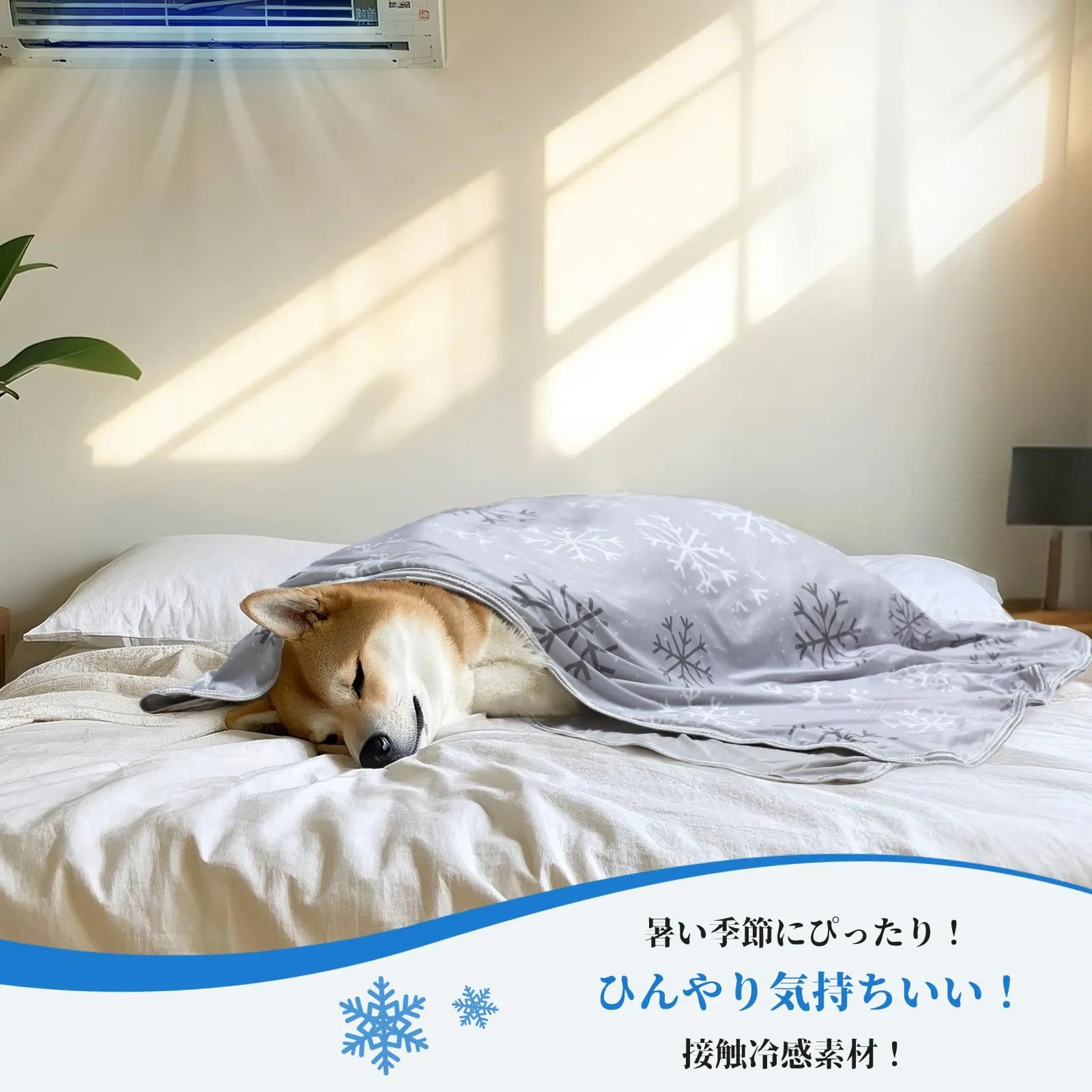 表裏両面ともに接触冷感素材を使用!ダブル冷感効果!夏らしく涼しげな雪柄デザイン。ペットも大喜び!ダブル冷感ブランケットで暑さ対策