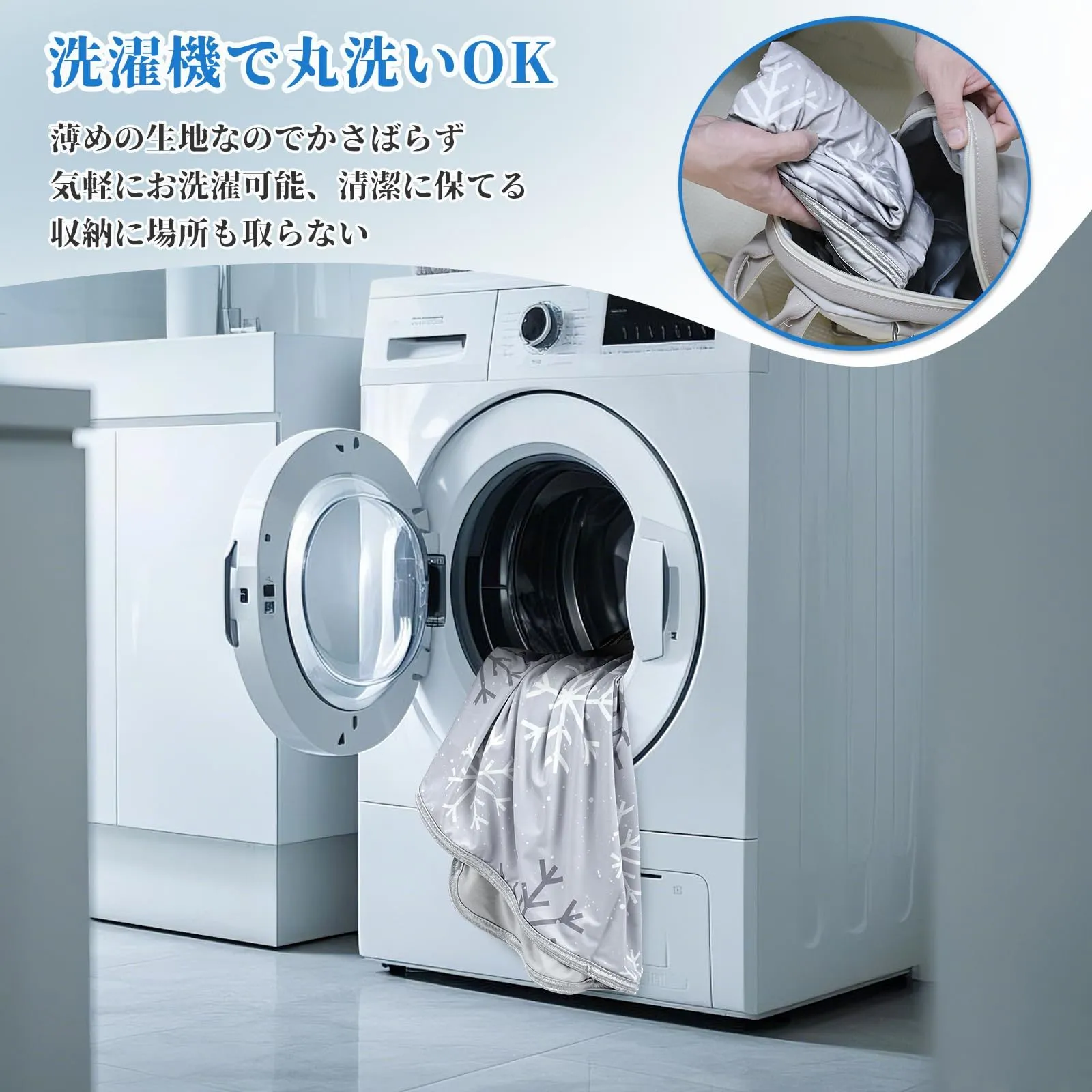 薄めの生地なので洗濯も簡単です。ご家庭の洗濯機で丸洗い出来るので汗ばみやすい夏も清潔に保てます