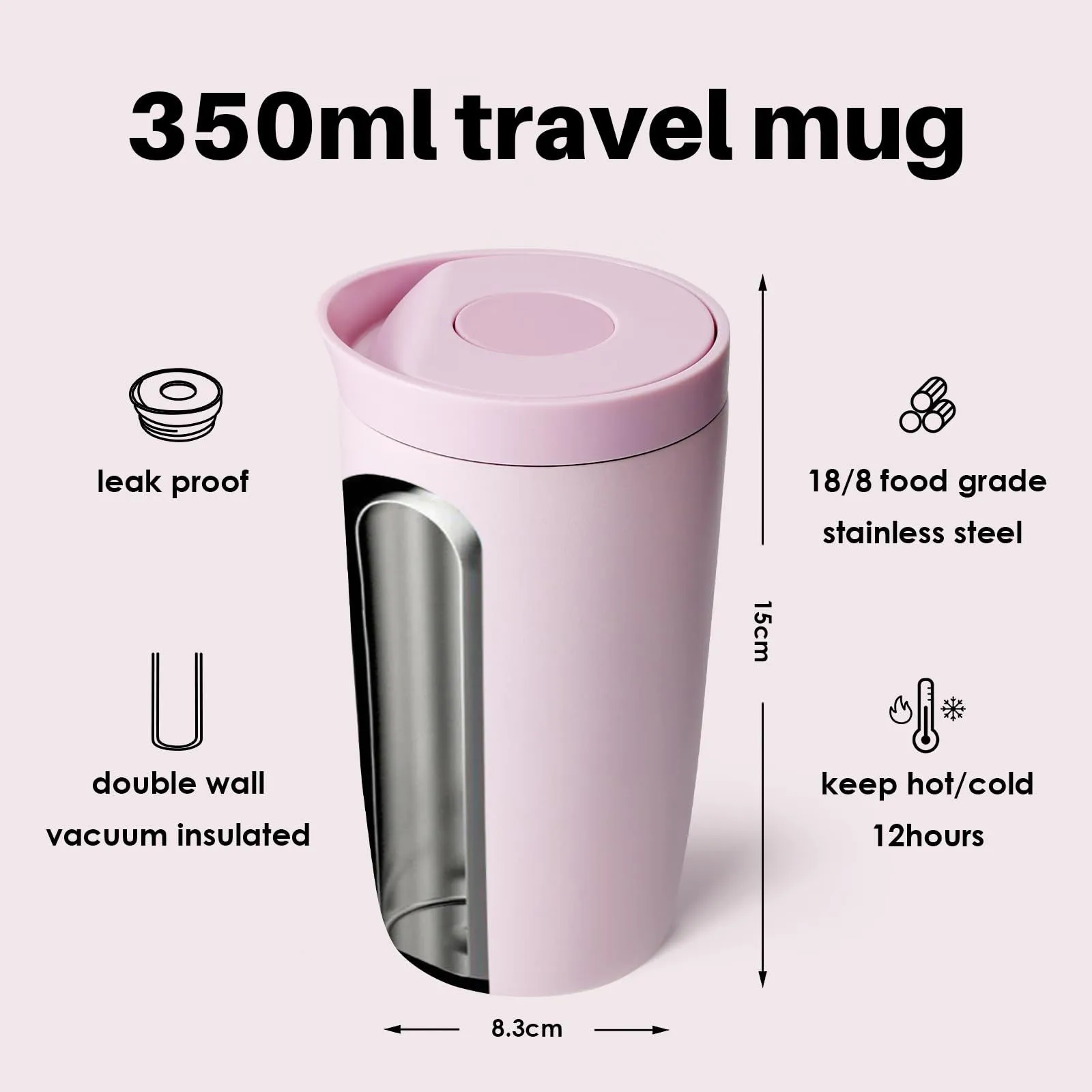 BOTTLE BOTTLE タンブラー 350ml ワンタッチ開閉 漏れ防止 真空断熱 サーモマグ コーヒー お茶用 保温保冷 ステンレス製 携帯マグ ボトル ピンク
