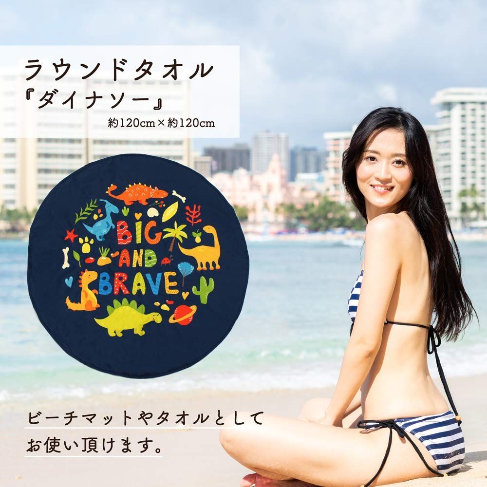のれん工房 ラウンドタオル ブランケット ひざ掛け ビーチタオル おしゃれ マルチタオル テーブルクロス 大判 円形 タオル ダイナソー 11732