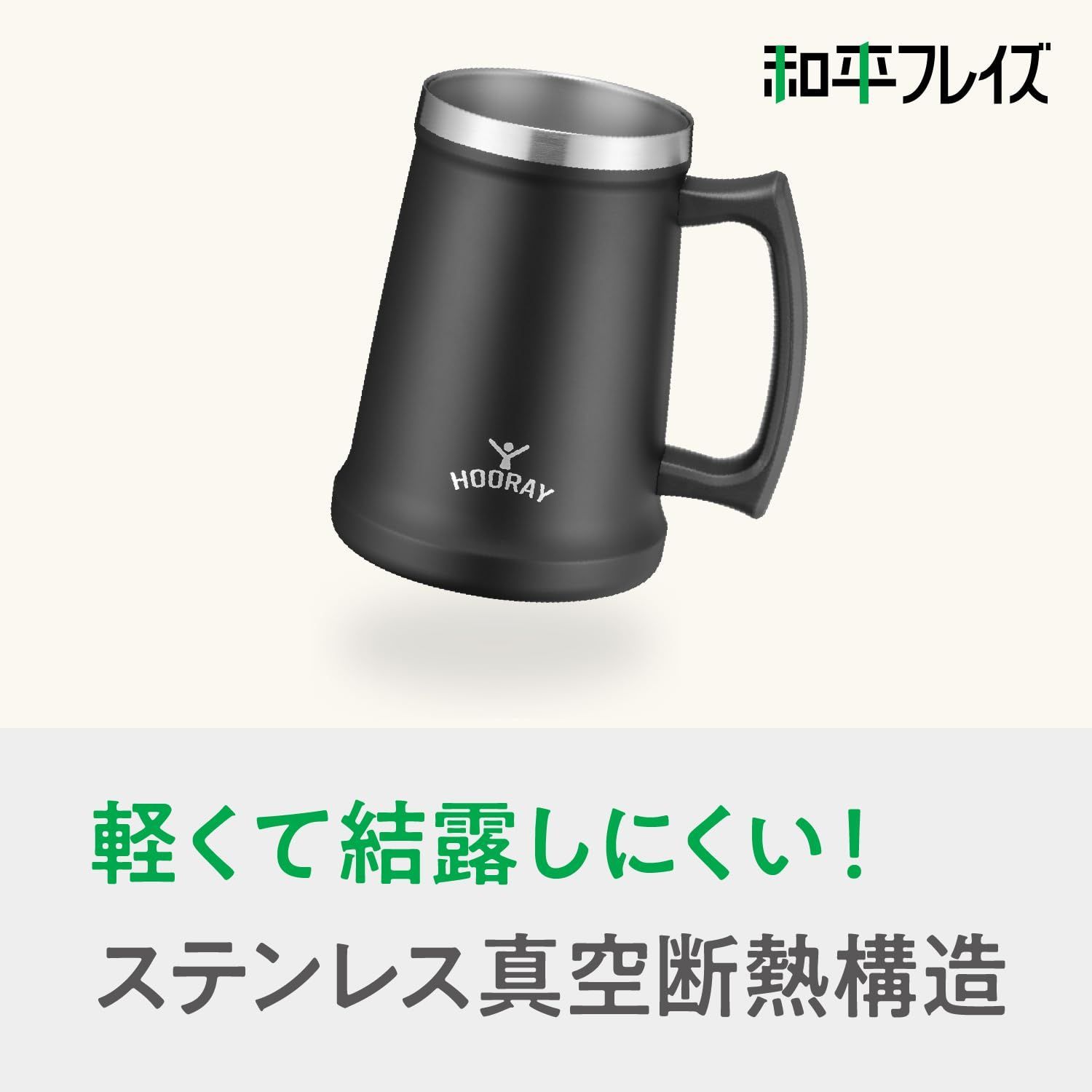 和平フレイズ 真空断熱 ビアジョッキ 700ml ブラック 保冷 保温 ステンレス タンブラー フーレイ ME-7505