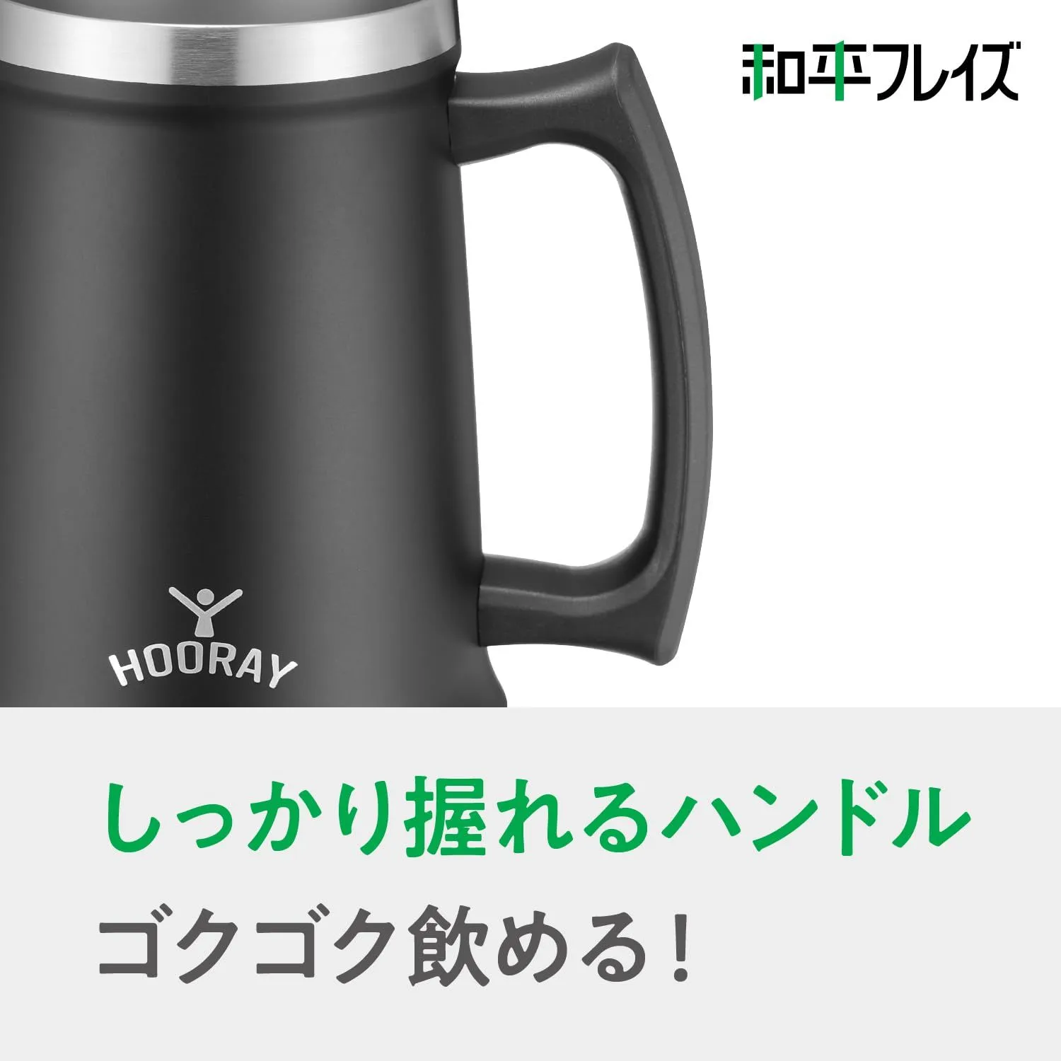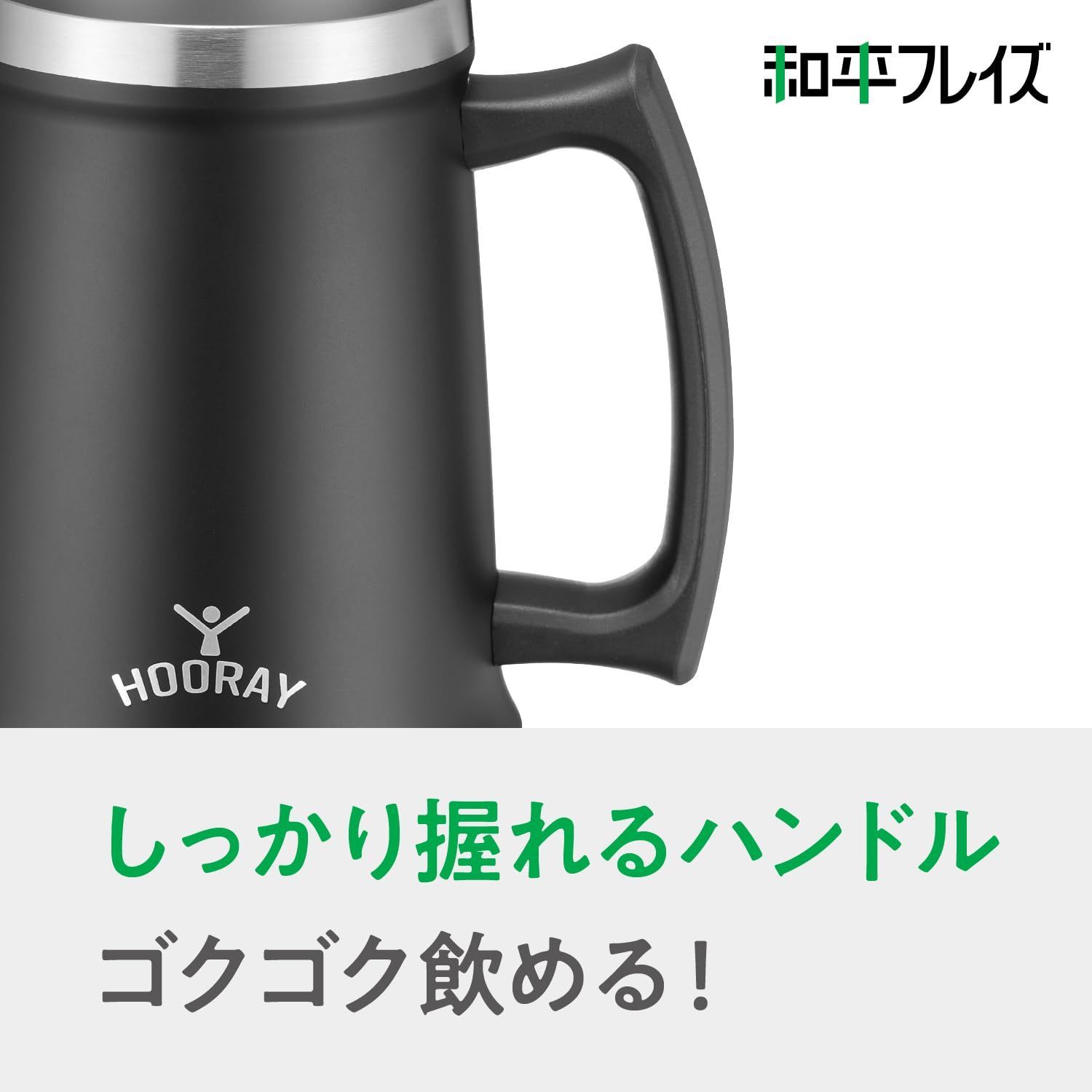 大容量の飲み物を冷たいまま飲み干せる真空断熱構造のジョッキ。