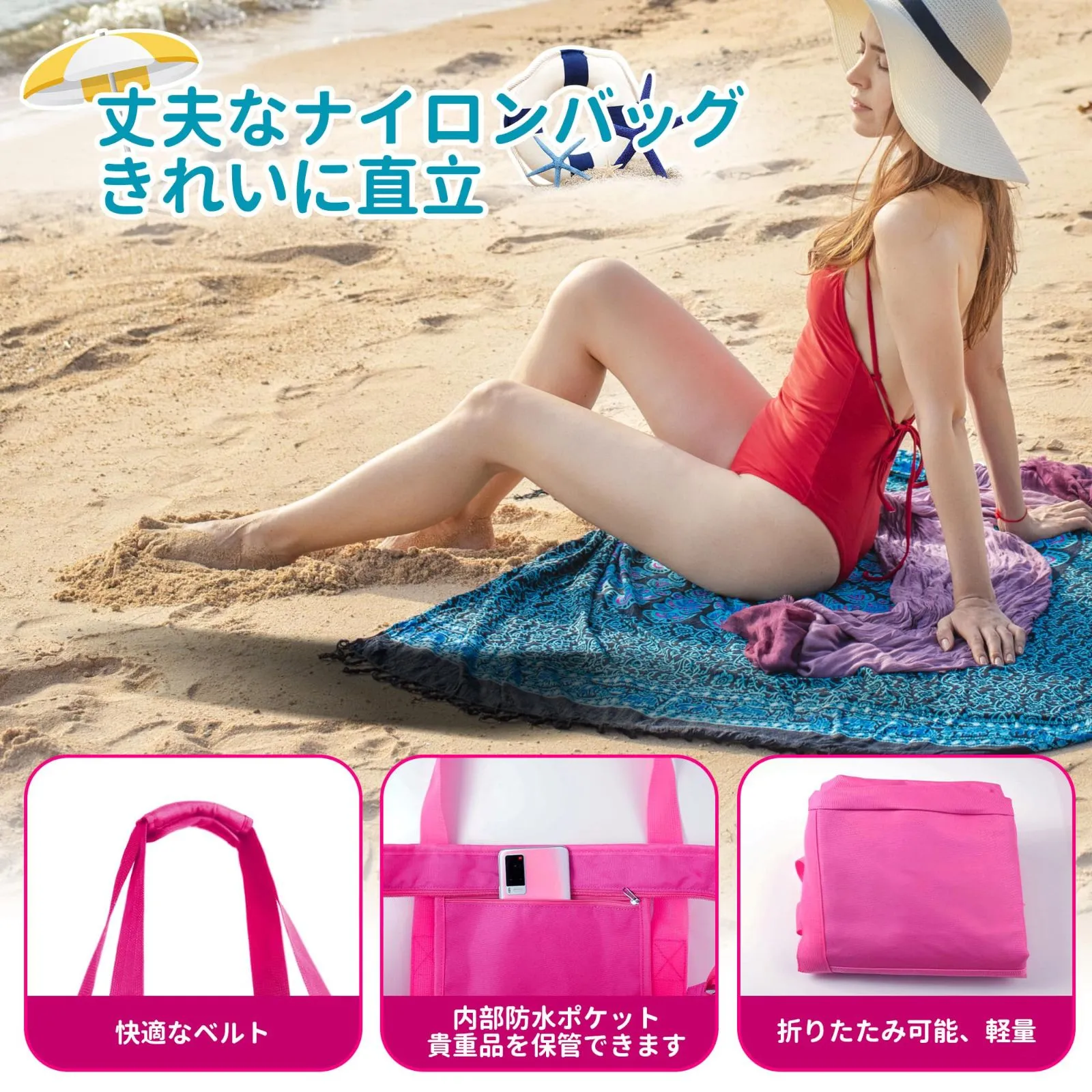 【超大容量】究極のビーチ パル、38L メッシュ ビーチ バッグは優れたデザインで十分な容量があり、ビーチでの日々の必需品をすべて簡単に収納できます。 バッグには、すべてのアイテムにすばやくアクセスできるように、6 つの耐水性と耐砂性の特大の外部ポケットが付いています。 さらに、砂に強い底面と防滴性の内側のジッパー付きポケットにより、貴重品を安全に保管できます。 実用的であるだけでなく、スタイリッシュで耐久性があります。 このビーチバッグでビーチでの一日を完璧にしましょう。