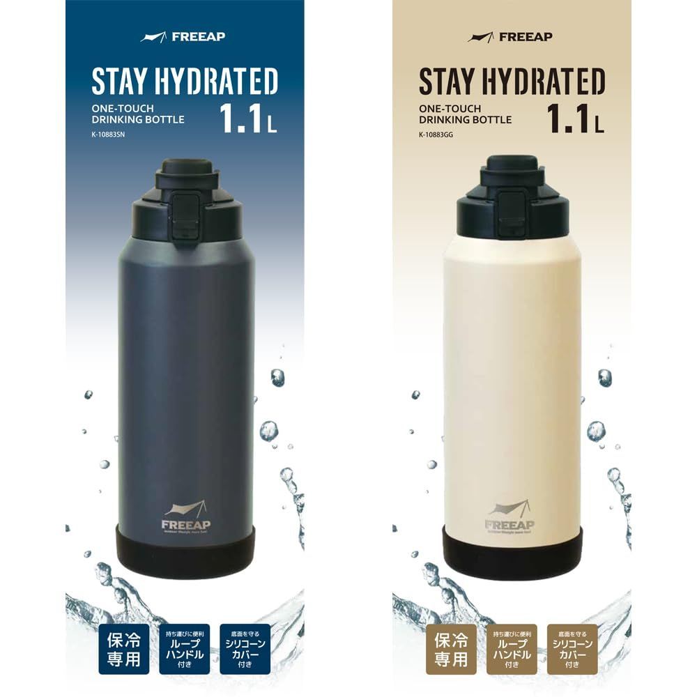 FREEAP 保冷 水筒 ワンタッチボトル 1.1リットル ワイド口径 洗いやすい アウトドア K-10883 (グレージュ)