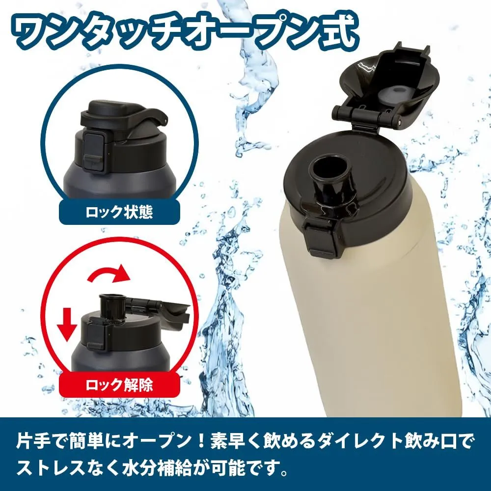 ワイド口径 洗いやすい 1.1リットル ワンタッチボトル アウトドア 水筒 K-10883 保冷 (グレージュ) FREEAP