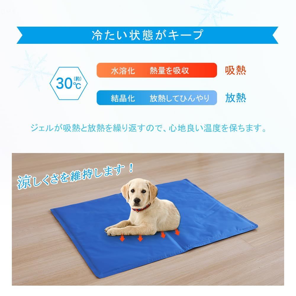 【夏のペット熱中症対策】本製品の中身は相変恒温素材で、塩を原料とした特殊冷却ジェルは常に一定の温度を保つ性質があります。30度以下になると冷えて結晶化し、30度以上になると熱を吸収して水溶化します。常温の室内に敷いておけばいつでも冷たい状態を保持できます。なので、長時間に使っていてもぬるくなれなくて、ペットは快適に横たわれます。