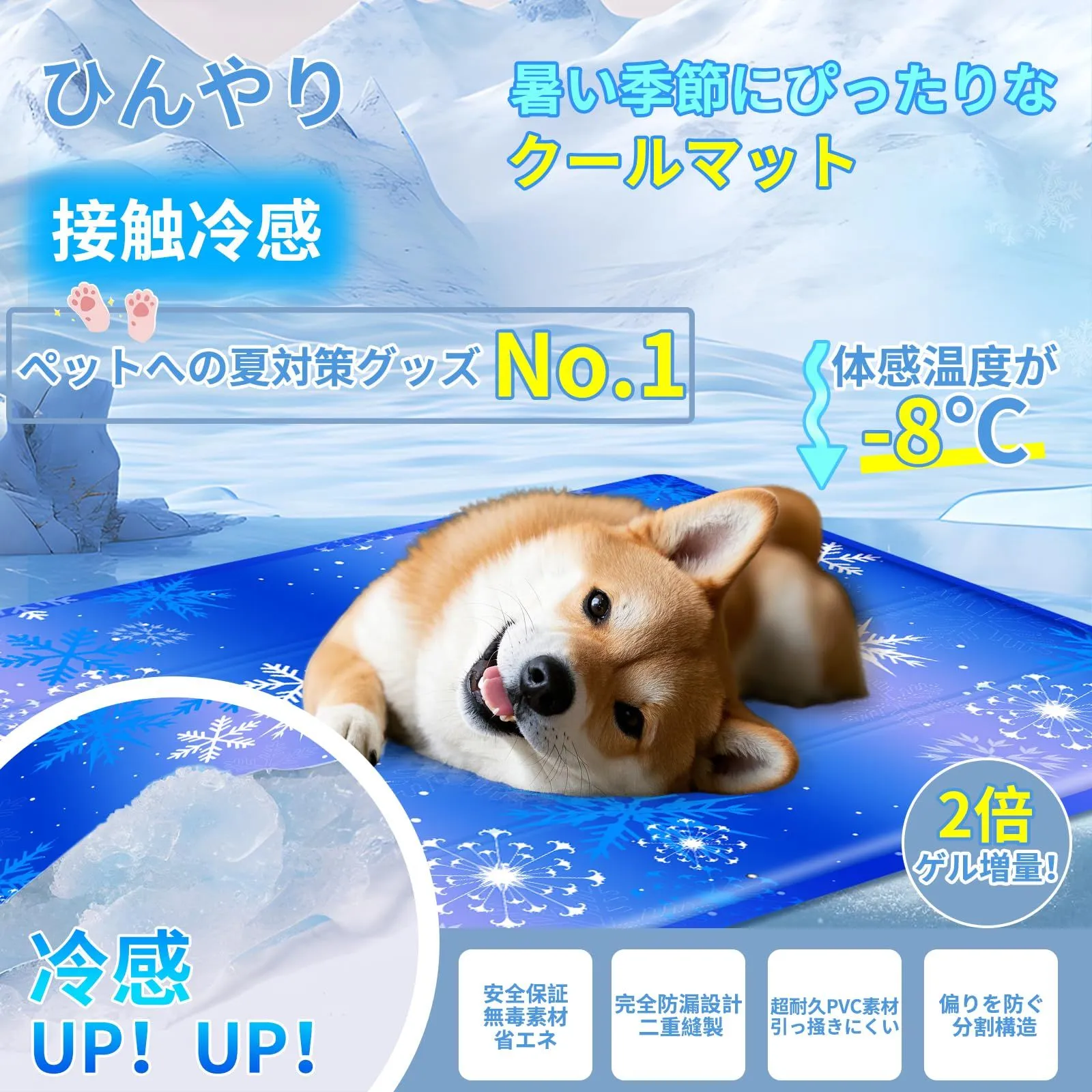 ペット用冷却マット 65*50cm 二重構造 防水加工 クールマット 犬・猫用 八つ折り畳めるひんやりマット 無害ジェル 接触冷感 冷却ジェルマット 省エネ 水洗い可 熱中症対策 小・中型犬 猫 ウサギなどのペットに対応可能 人間用にも(長方形 2XL(80×120cm))