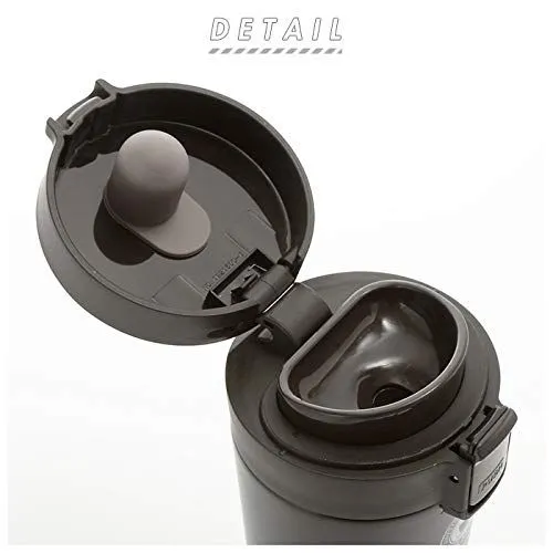 材質:本体/ステンレス鋼(アクリル樹脂塗装)、飲み口・フタ・フタ本体/PP、ロックレバー/ABS樹脂、ストッパー/ポリアセタール、バネ・軸/ステンレス鋼、パッキン(フタ・飲み口)/シリコーンゴム