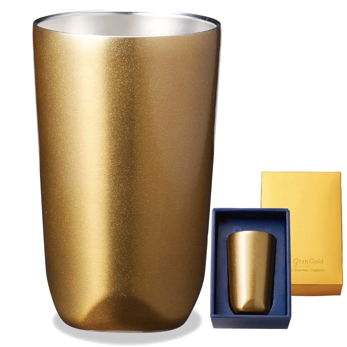 保温 保冷 真空断熱2層 ステンレス シンプル タンブラー スタイリッシュ おしゃれデザイン タンブラー サーモマグ ゴールド ギフトパッケージ 丸辰(Marutatsu) 450ml 35391