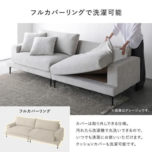 ■フルカバーリングで洗濯可能 カバーは取り外しできる仕様。 汚れたら洗濯機で丸洗いできるので、いつでも清潔にお使いいただけます。 クッションカバーも洗濯可能です。