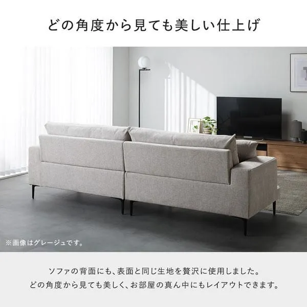 ■どの角度から見ても美しい仕上げ ソファの背面にも、表面と同じ生地を贅沢に使用しました。 どの角度から見ても美しく、お部屋の真ん中にもレイアウトできます。