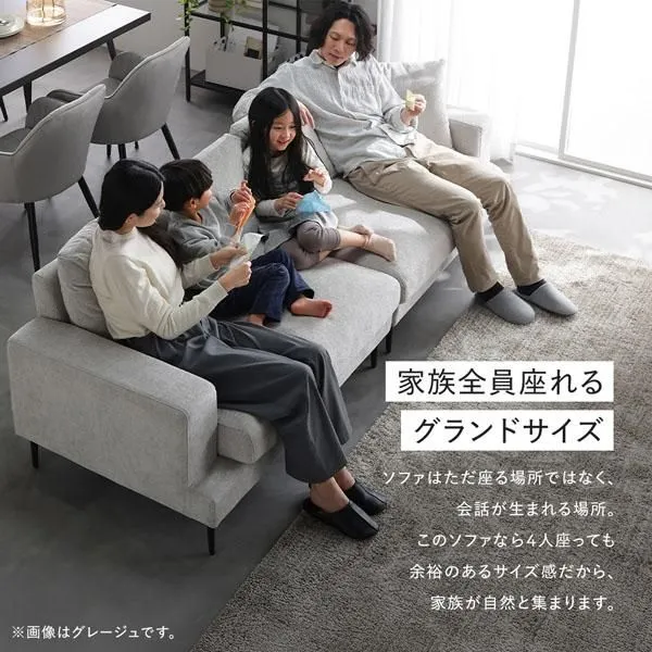 ■家族全員座れるグランドサイズ ソファはただ座る場所ではなく、会話が生まれる場所。 このソファなら4人座っても余裕のあるサイズ感だから、家族が自然と集まります。 横になってゆったりと寝ることができるサイズ感です。