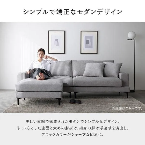 ■シンプルで端正なモダンデザイン 美しい直線で構成されたモダンでシンプルなデザイン。 ふっくらとした座面と太めの肘掛け、細身の脚は浮遊感を演出し、 ブラックカラーがシャープな印象に。