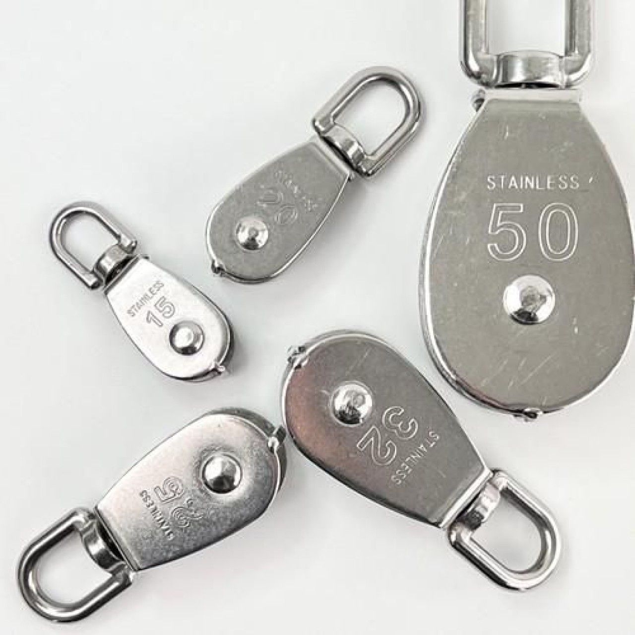 ステンレス 豆ブロック 滑車 使用荷重10kg ~125kg 車輪径15〜32mm 4サイズ