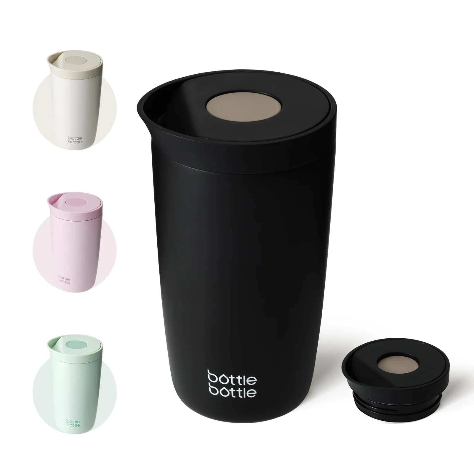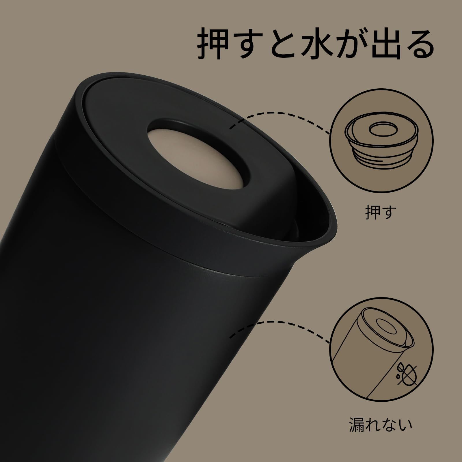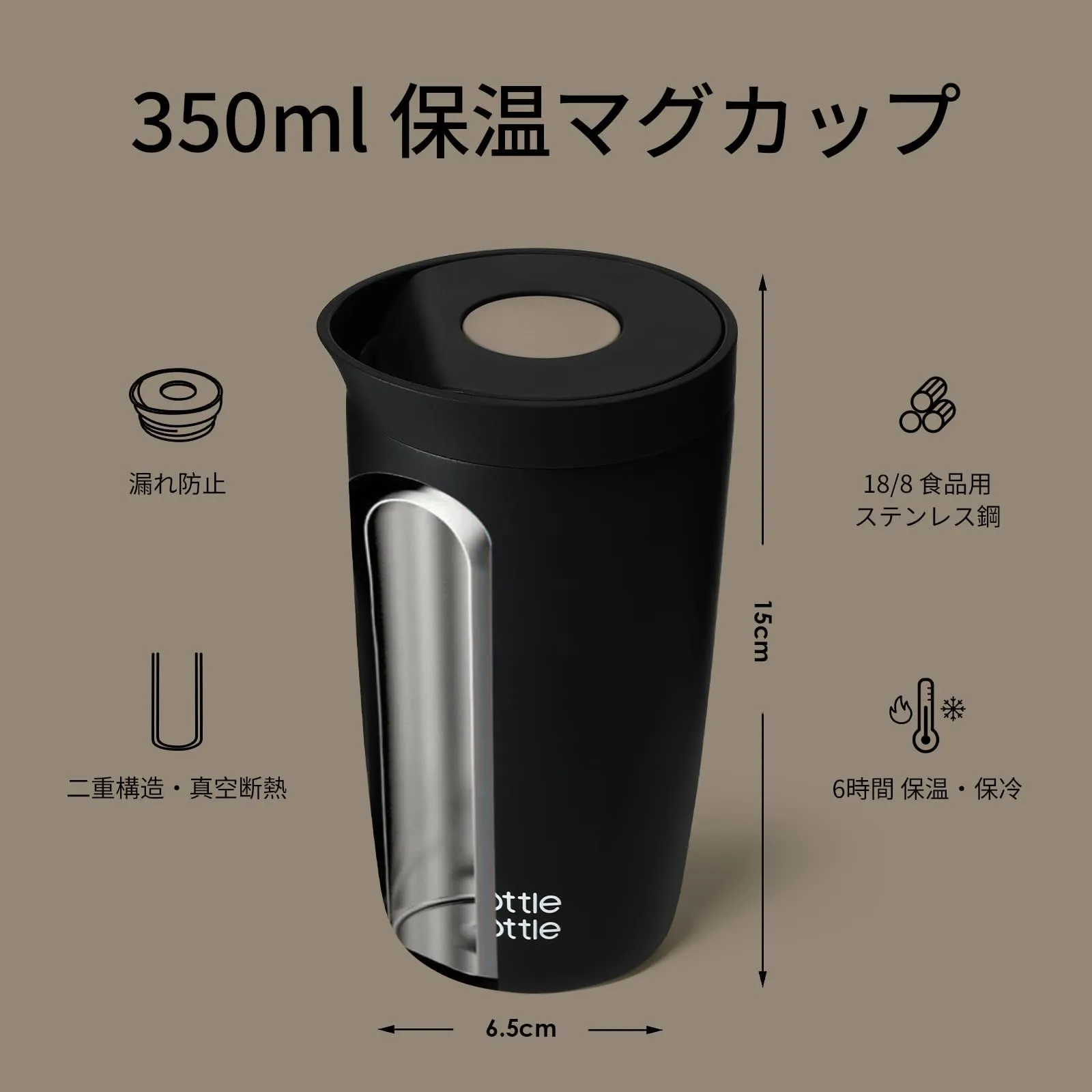 BOTTLE BOTTLE タンブラー 350ml ワンタッチ開閉 漏れ防止 真空断熱 サーモマグ コーヒー お茶用 保温保冷 ステンレス製 携帯マグ ボトル ブラック