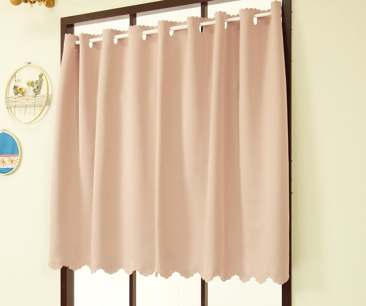 かーてん屋さんアウトレット 防炎遮光1級カフェカーテン [ピティ] クラウドピンク色 幅145cm 丈90cm 1枚