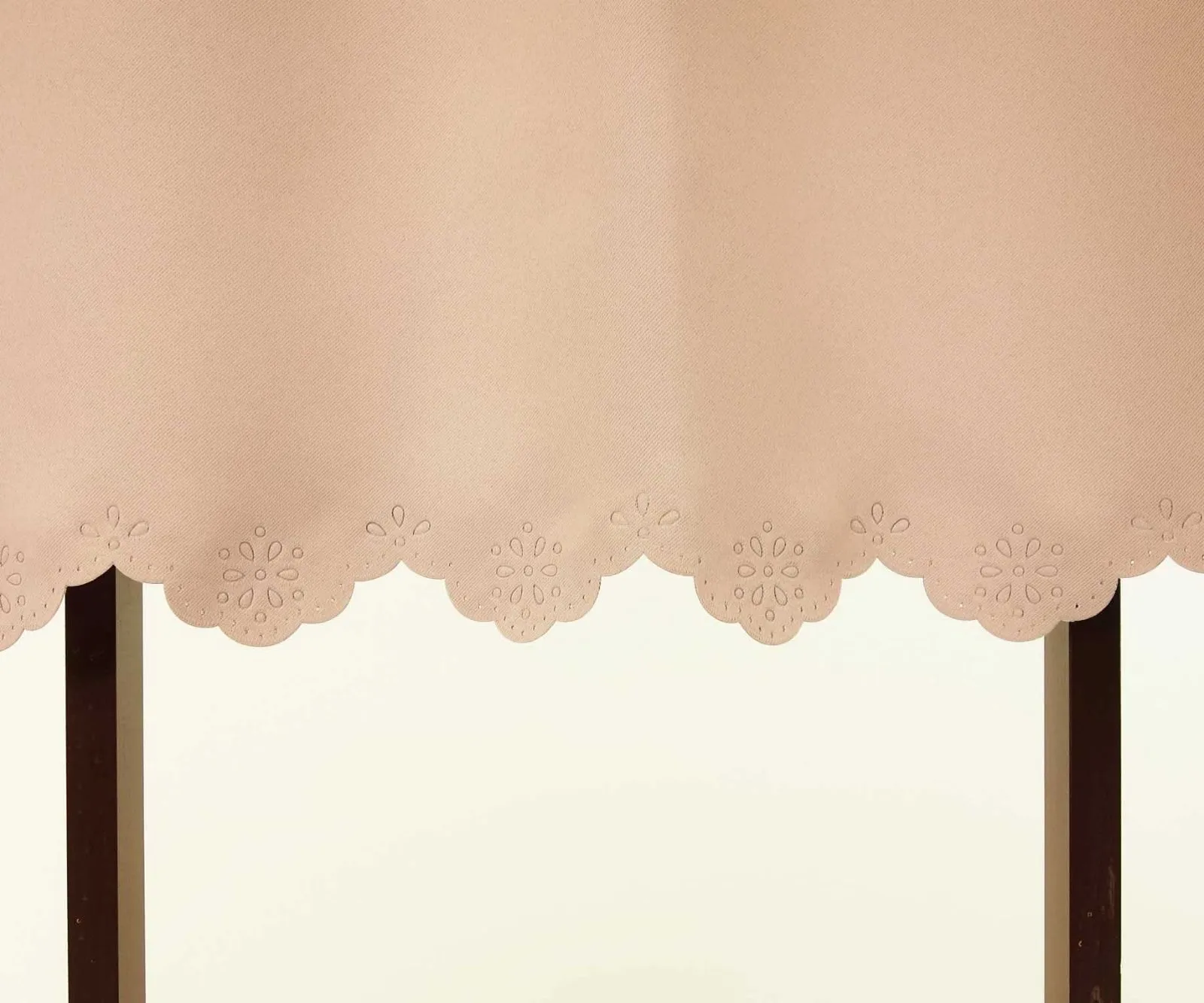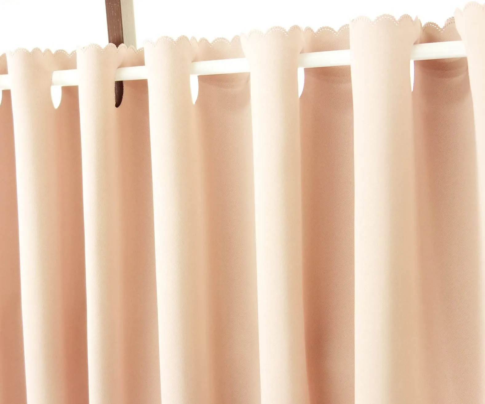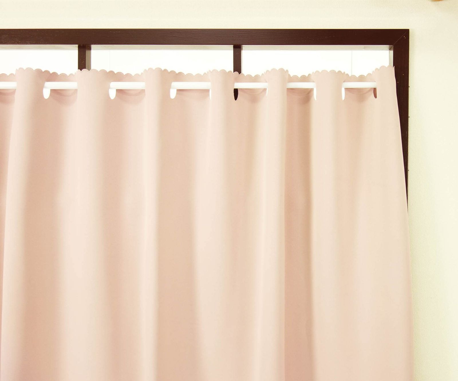 商品内容:断熱遮熱機能に優れた滑らかな触感の無地の防炎機能付きの遮光率99.99%の遮光1級カフェカーテン「ピティ」(色:クラウドピンク 柄:無地) 1枚 ※ウルトラソニックウェーブ加工で裾を深めのスカラップ状にカット、上部はロッドホールと小さなウェーブ状にカット、無地でありながらもオシャレでスッキリとシンプルな仕上がりになっています。両サイドのみミシン縫製となっており、防炎ラベル等が縫い付けられています。