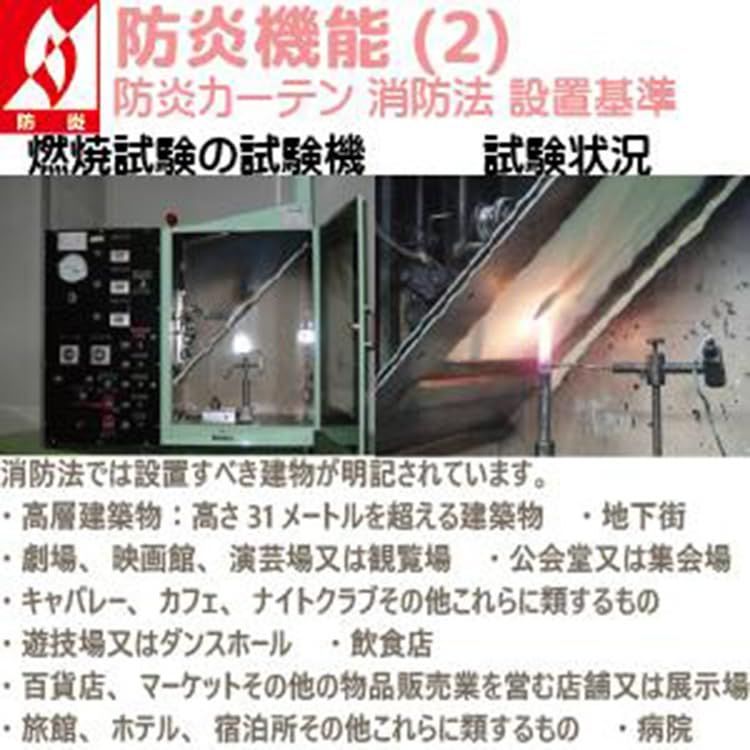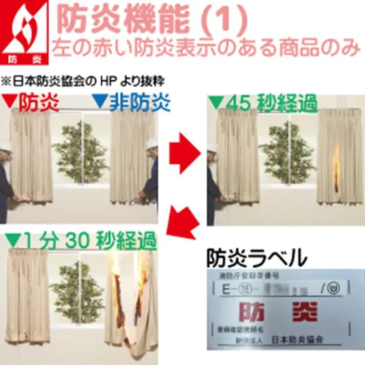 【遮光1級 遮光率99.99%】、防炎機能(消防法適合、防炎協会認定ラベル付)、断熱遮熱機能
